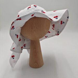 Kapelusz muślinowy dla dziewczynki Wisienki z kokardą