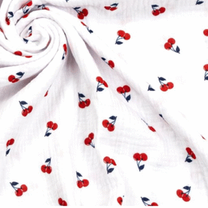 Muślinowa chustka z daszkiem dla dziewczynki – Wisienki