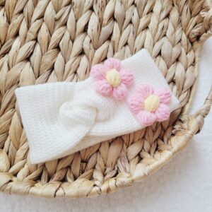 Opaska dla dziewczynki sweterkowa z kwiatami – kolory do wyboru