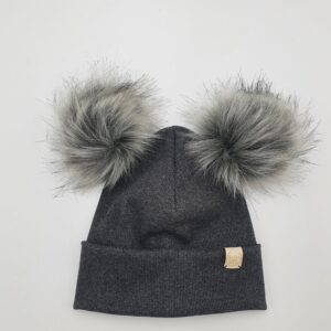 Czapka prążkowana w kolorze antracytowym z jednym lub dwoma pomponami. Możliwość podszycia polarem.