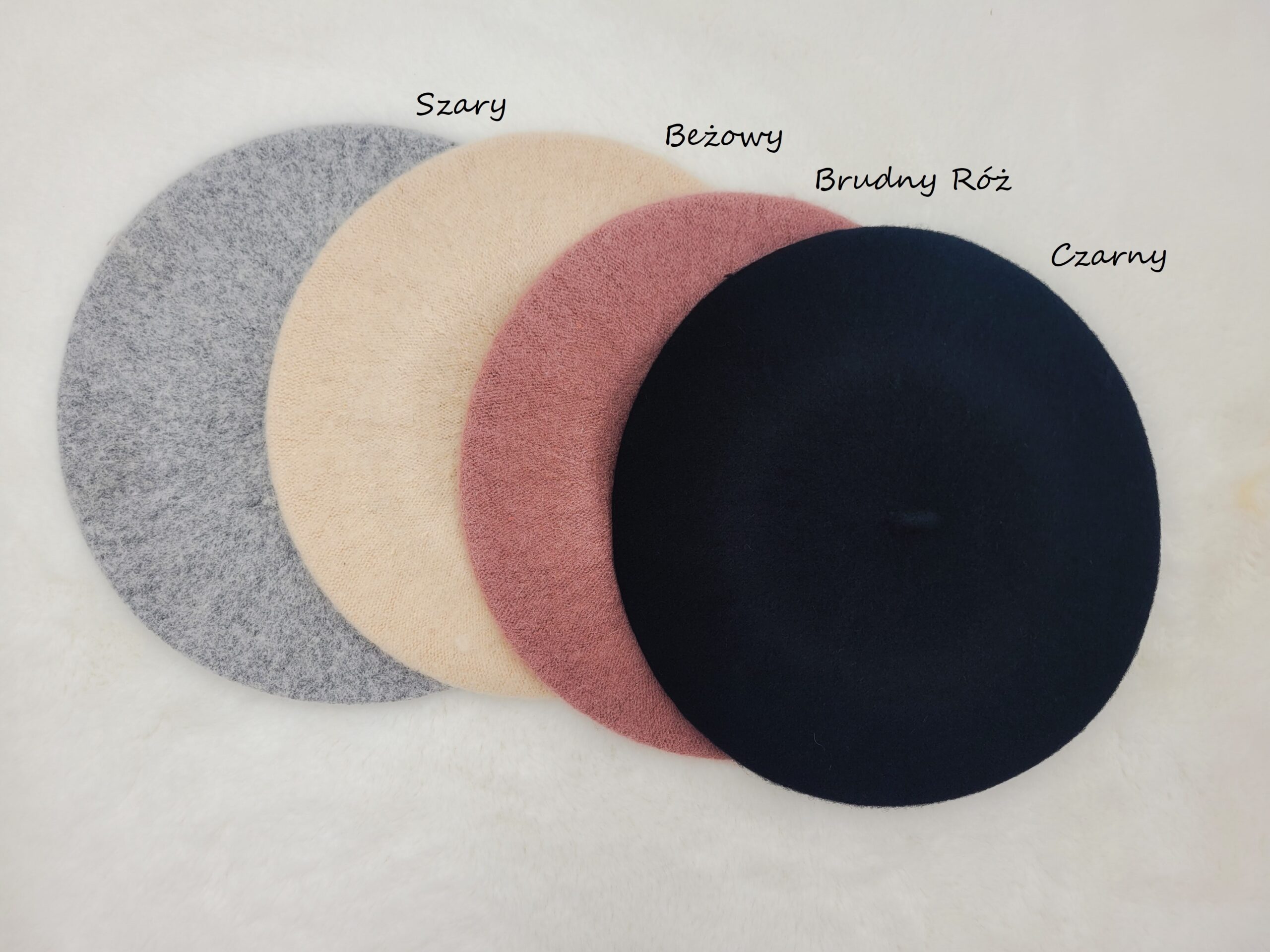 W ofercie posiadamy również berety wykonane w 100% z wełny. Do beretów polecamy pasujące szaliki z pomponami i rękawiczki z dzianiny swetrowej.