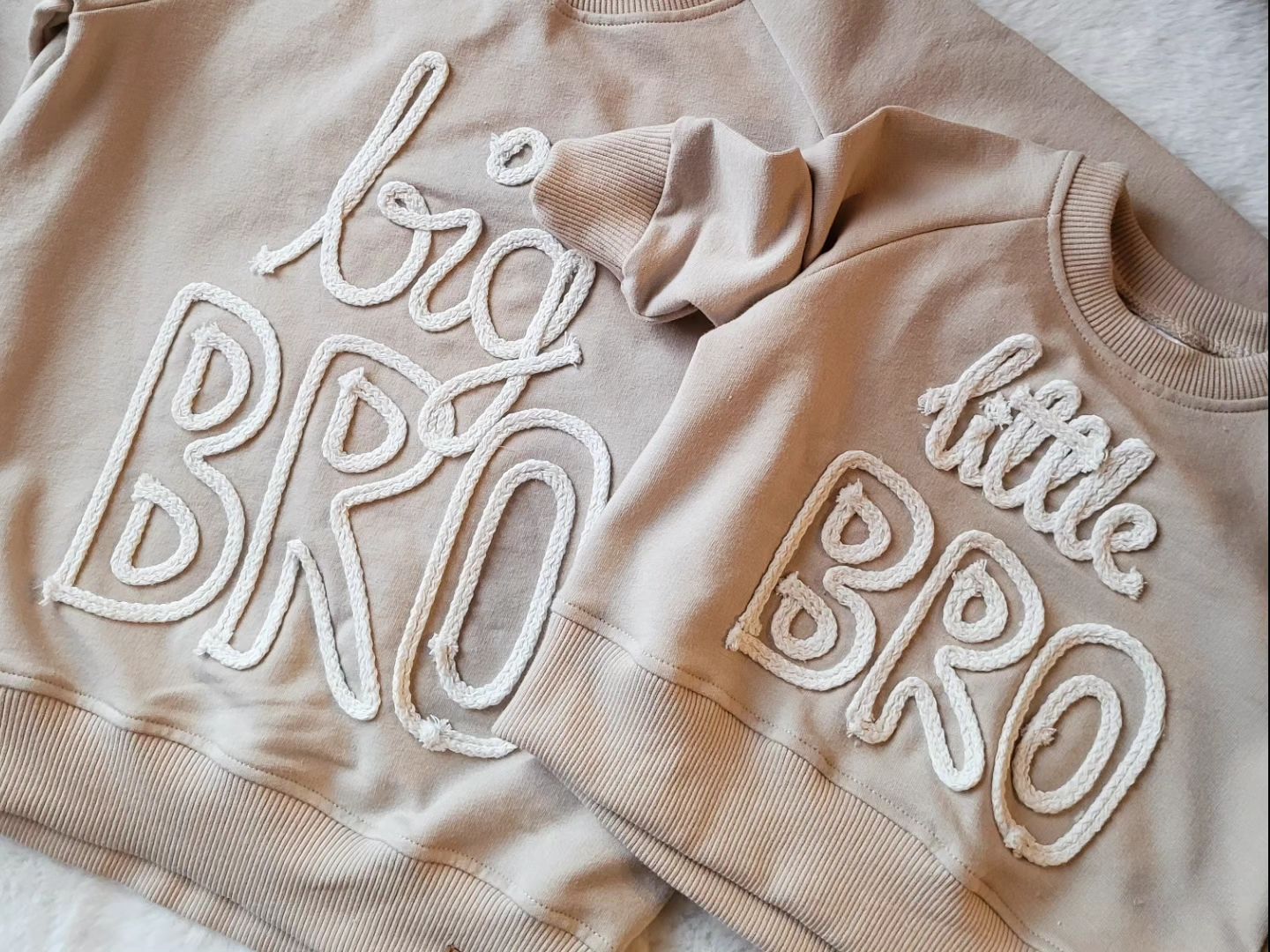 Oryginalny napis „Big Bro”, wykonany ze sznurka bawełnianego, dodaje bluzie nowoczesnego i modnego wyglądu. To świetny sposób, by starszy brat mógł z dumą nosić swój tytuł, prezentując się stylowo w każdej sytuacji.
