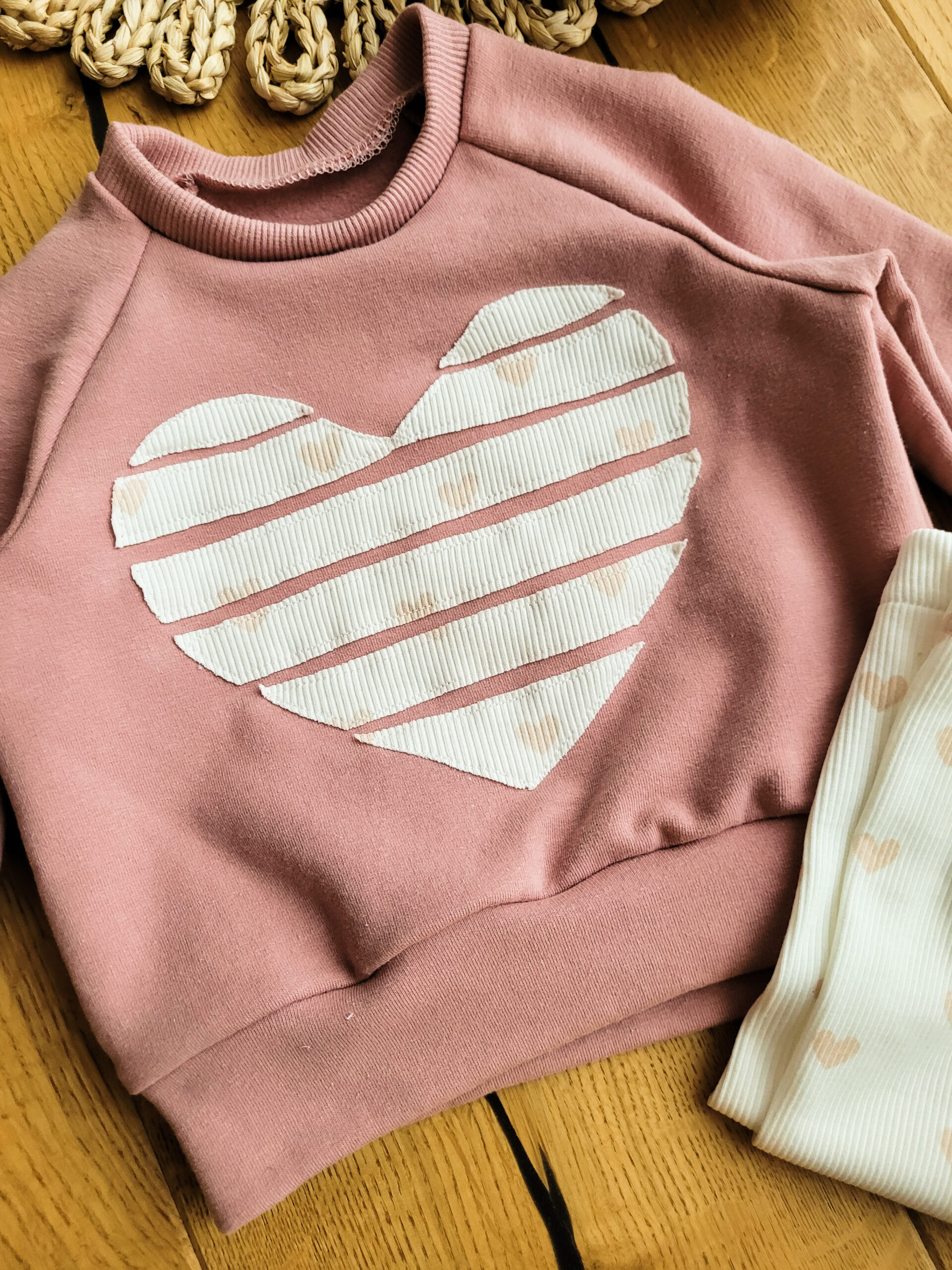 Dzianinowa bluza z serduszkiem prążkowanym w dowolnym kolorze.