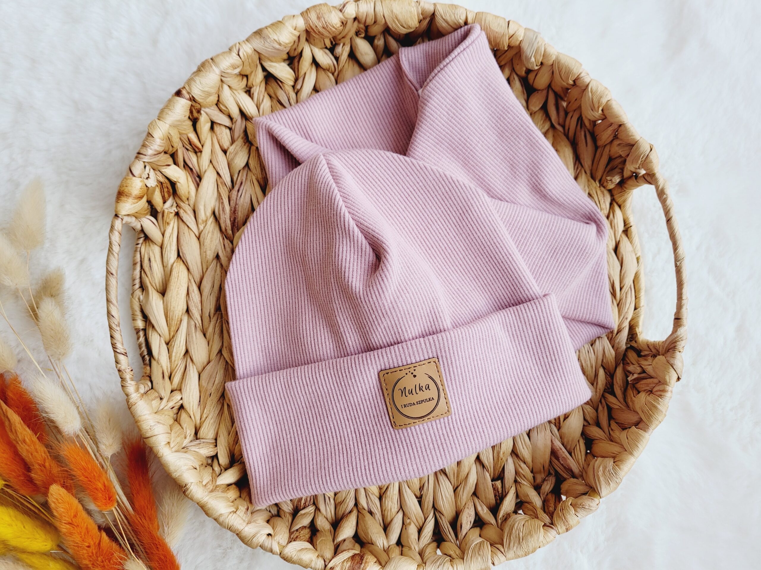 Czapka i komin dla dziecka uszyte z dzianiny prążkowanej w kolorze pastelowy róż, będą idealnym wyborem dla dziewczynki. To wyjątkowy zestaw na jesień i wiosnę, który łączy styl i funkcjonalność.