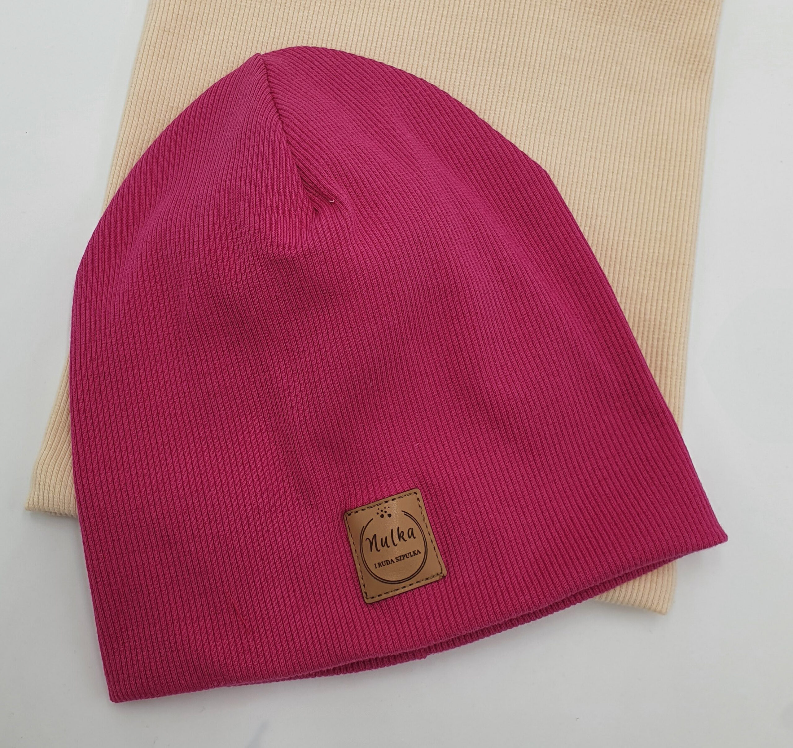 Klasyczna czapka dla dziewczynki o lekko wydłużonym tyle. Uszyta z podwójnej warstwy dzianiny prążkowanej w kolorze intensywnej fuksji.