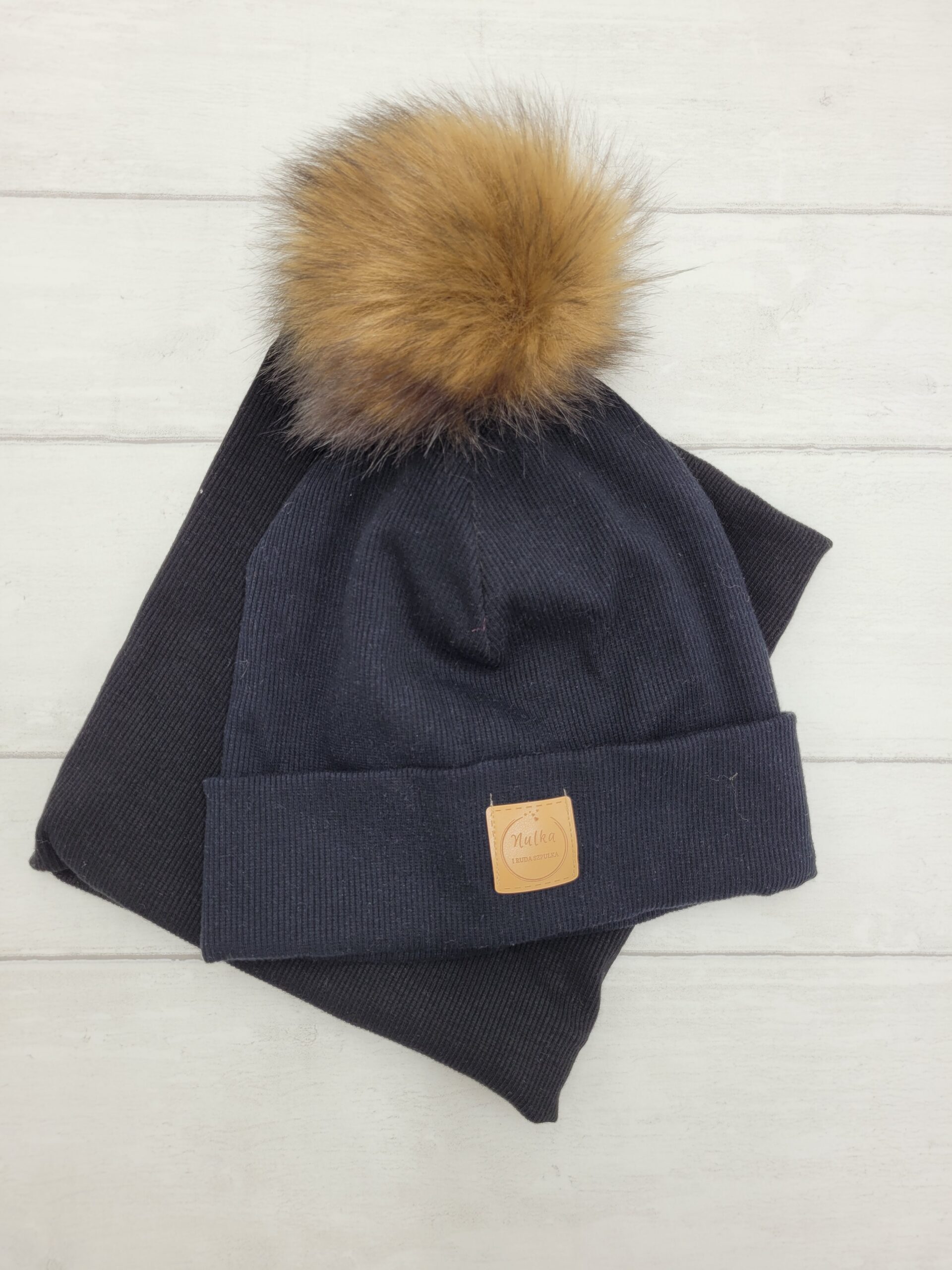 Czapka świetnie się sprawdzi na ciepłe zimy a jeśli wybierzesz podszycie polarem również na mroźne dni. Do czapki możesz dobrać pasujący komin lub szalik z dzianiny sweterkowej z pomponami.