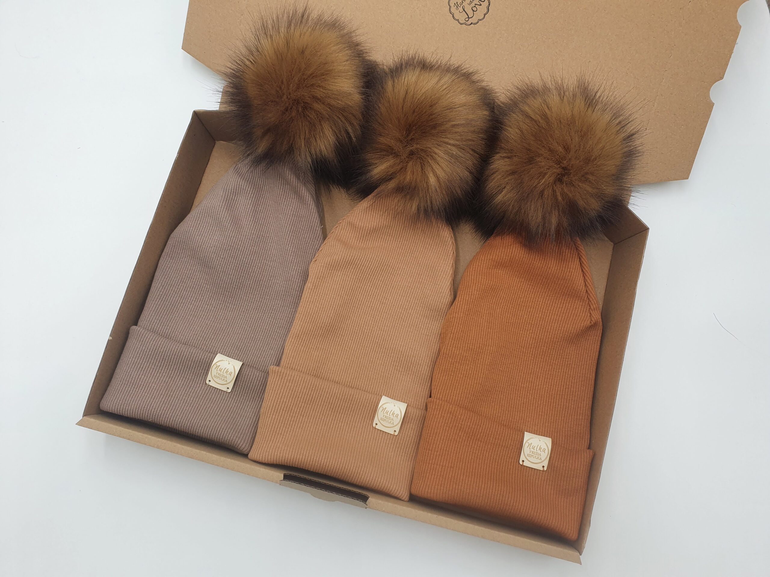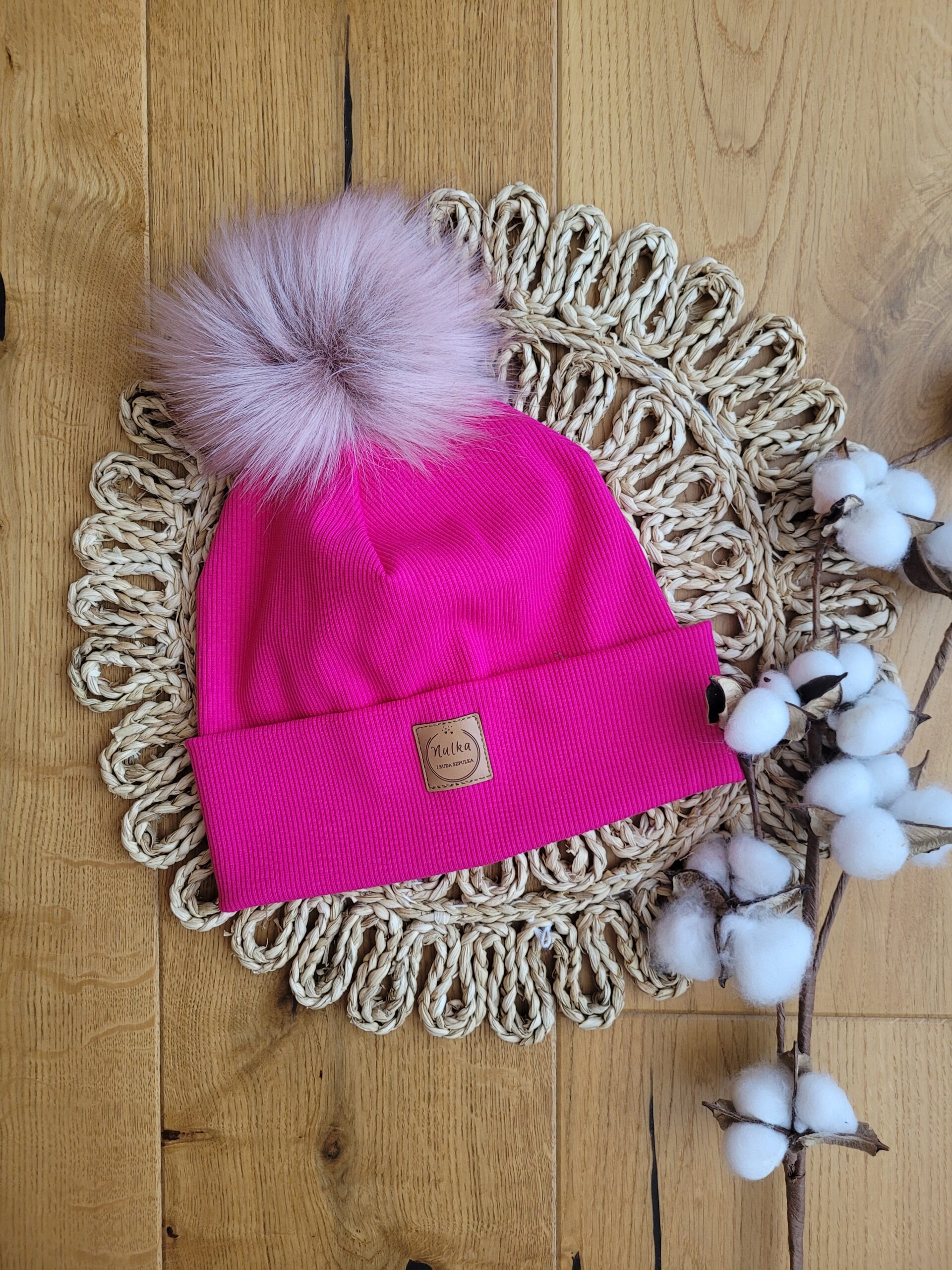 Czapka w wybranym kolorze wykonana z dzianiny prążkowanej, która jest miękka i elastyczna. Możesz ją ozdobić jednym lub dwoma pomponami w wybranym przez siebie kolorze. Szyta z podwójnej dzianiny prążkowanej lub podszyta ciepłym polarem w wybranym kolorze.