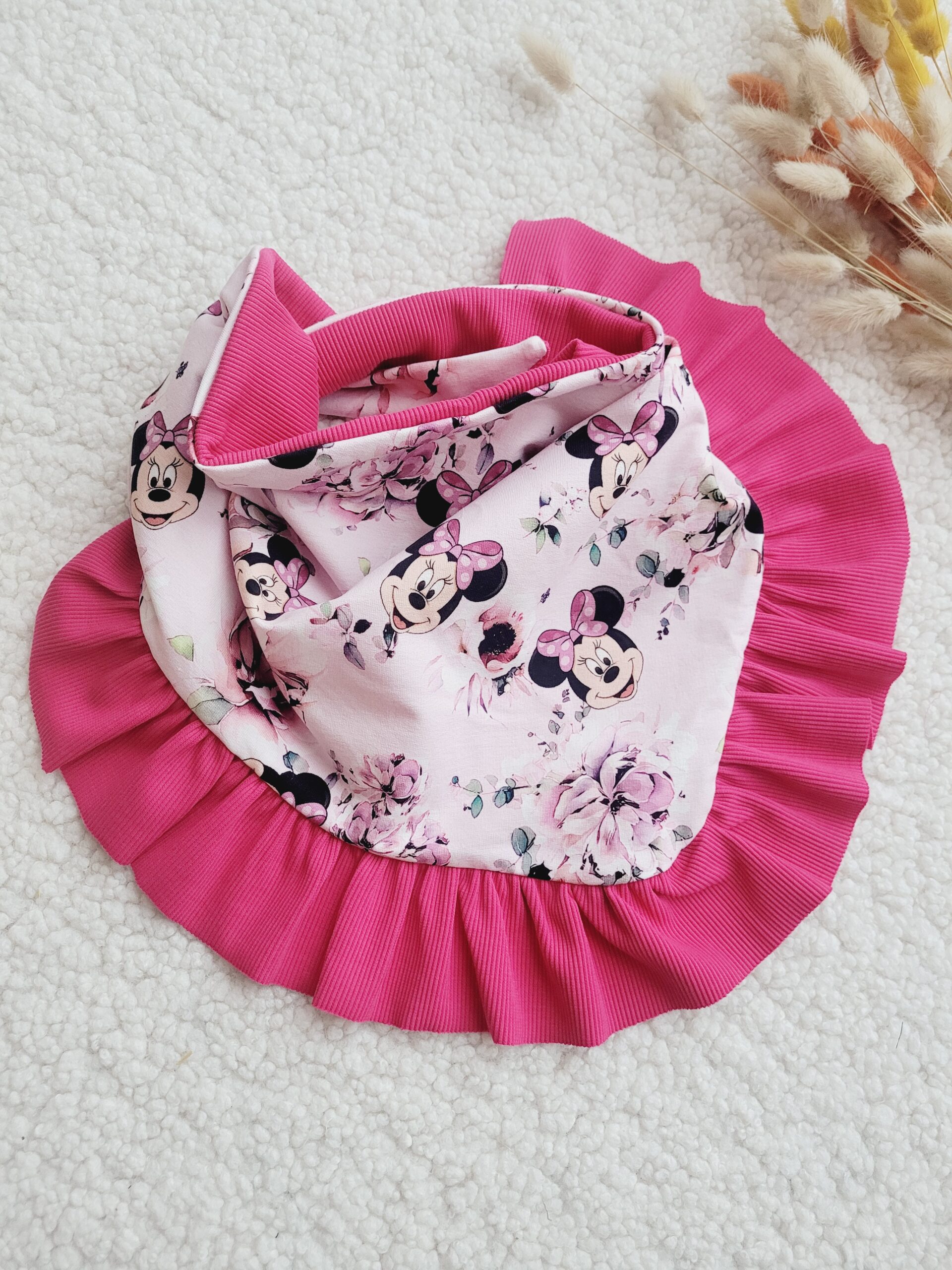 Czapka i chusta dla dziewczynki z motywem Myszki Minnie – uroczy zestaw z uszkami i perełkami