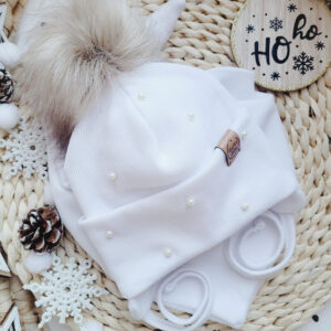 - Jedna warstwa: Lżejsza wersja z jedną warstwą na główce, wywinięciem na uszkach ozdobionym perełkami. Idealna na cieplejsze dni.