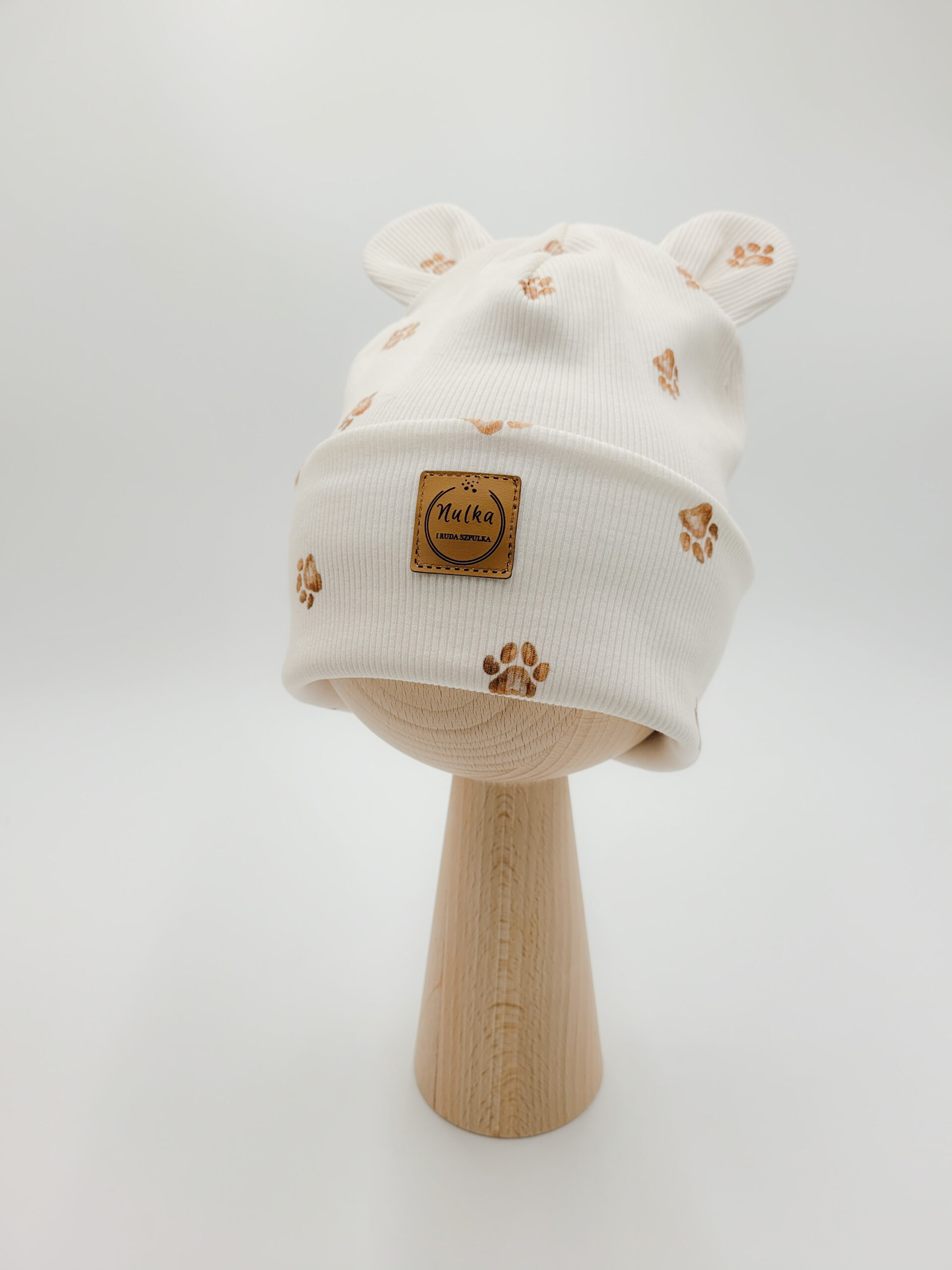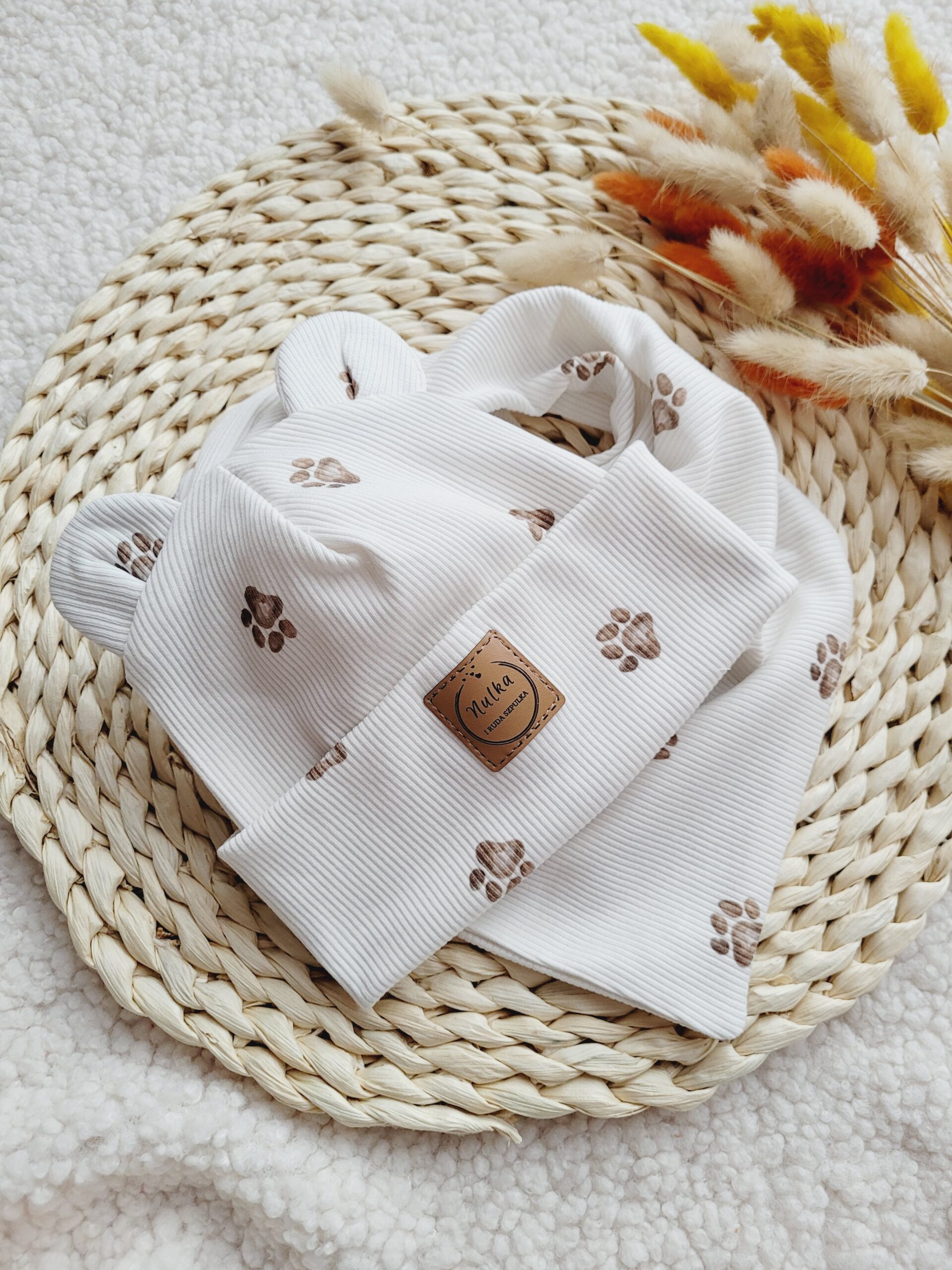Komplet dziecięcy z dzianiny prążkowanej premium z misiowymi uszkami w łapki.
