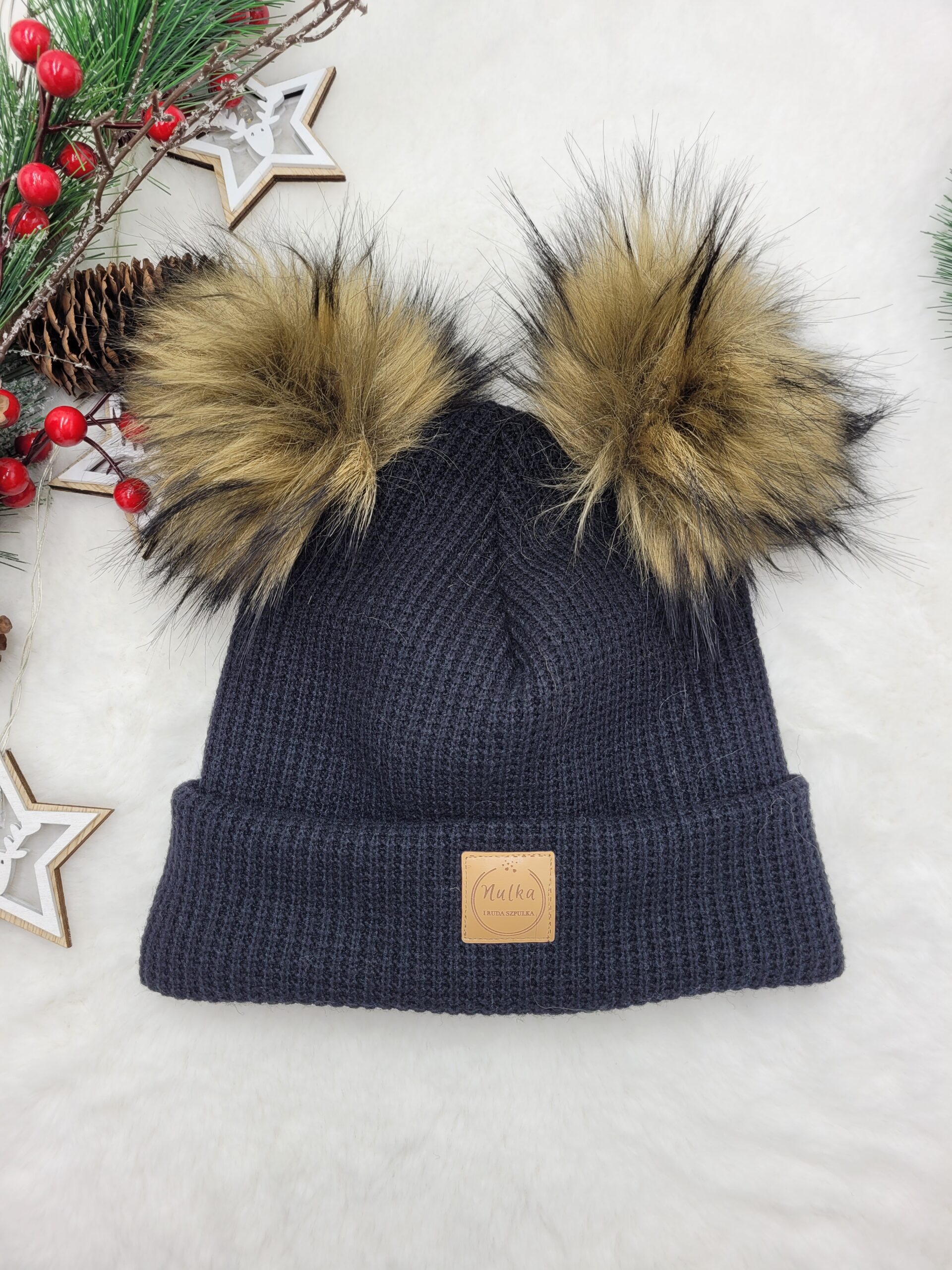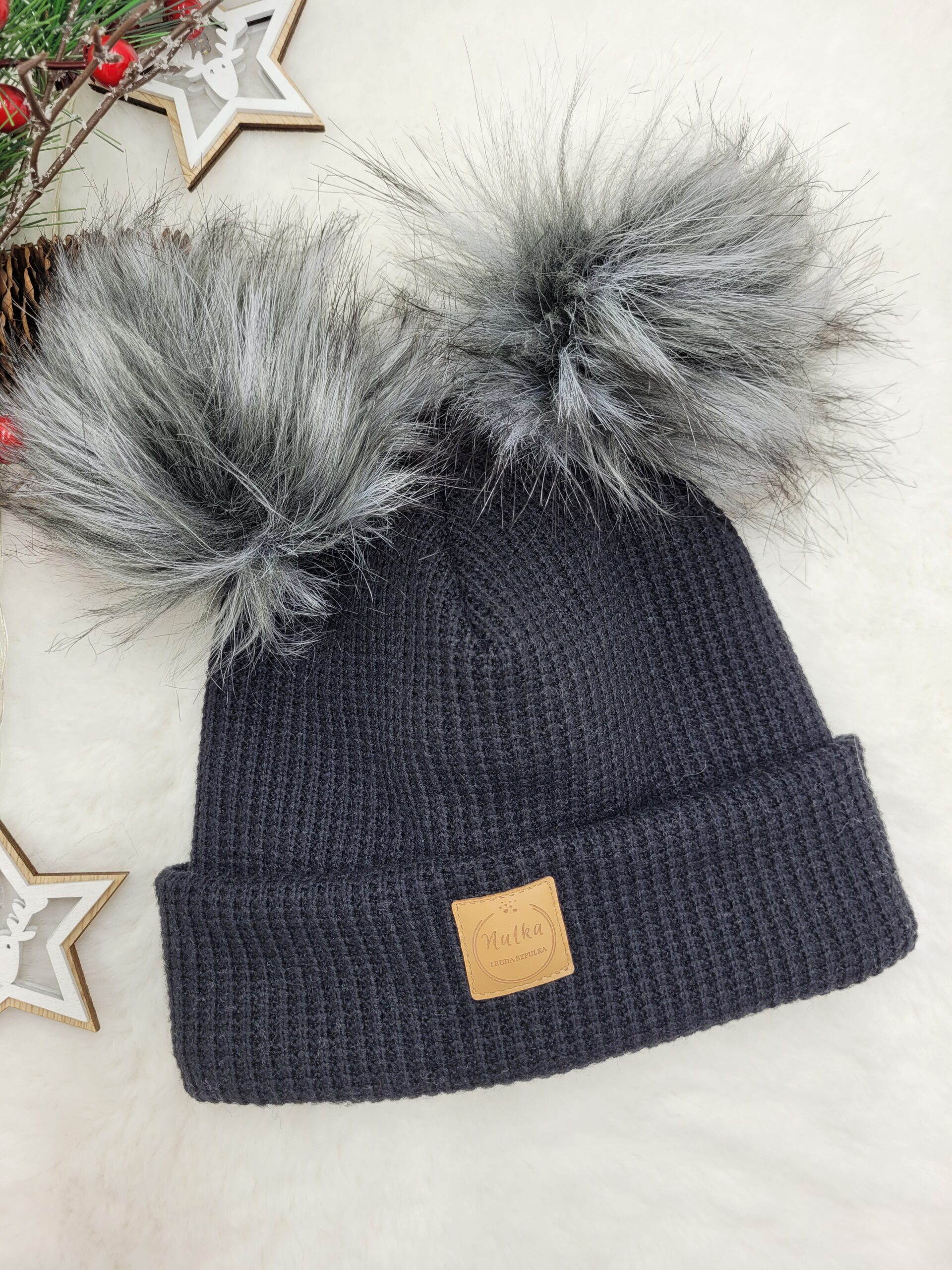 Czapka wykonana jest z wysokiej jakości, podwójnej dzianiny sweterkowej, która jest miękka i nie podrażnia skóry. Zapewnia komfort nawet podczas długiego noszenia, a czarny odcień dodaje jej uniwersalności, sprawdzając się zarówno dla dzieci, jak i dorosłych. - Możliwość personalizacji z pomponami