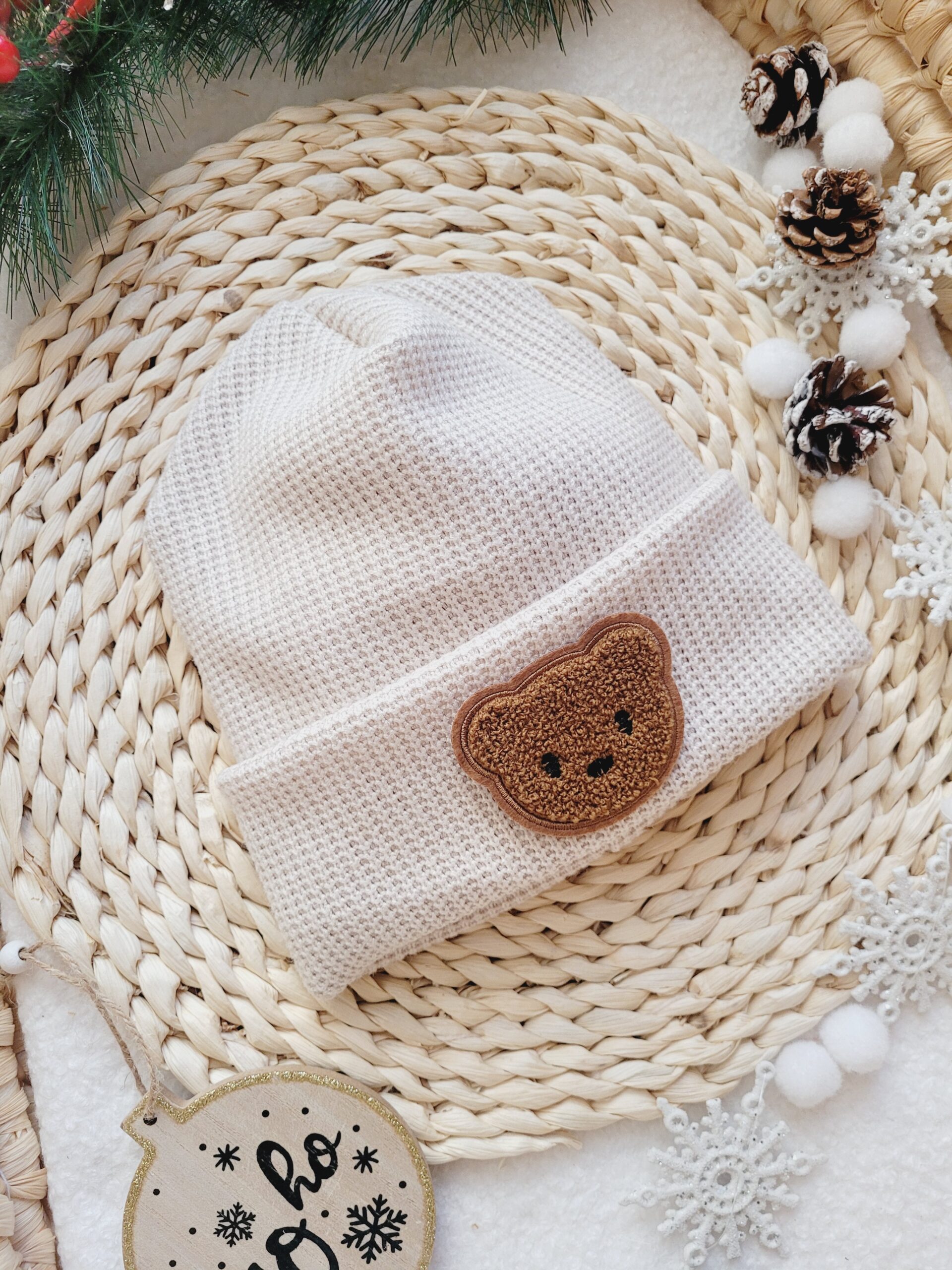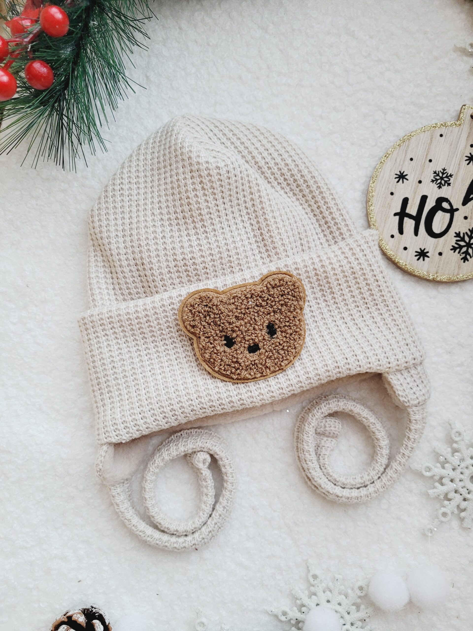 Czapka została ozdobiona uroczą naszywką w kształcie misia – ponadczasowy dodatek, który pasuje każdemu! - Dodatkowe ocieplenie i opcja wiązania z uszkami