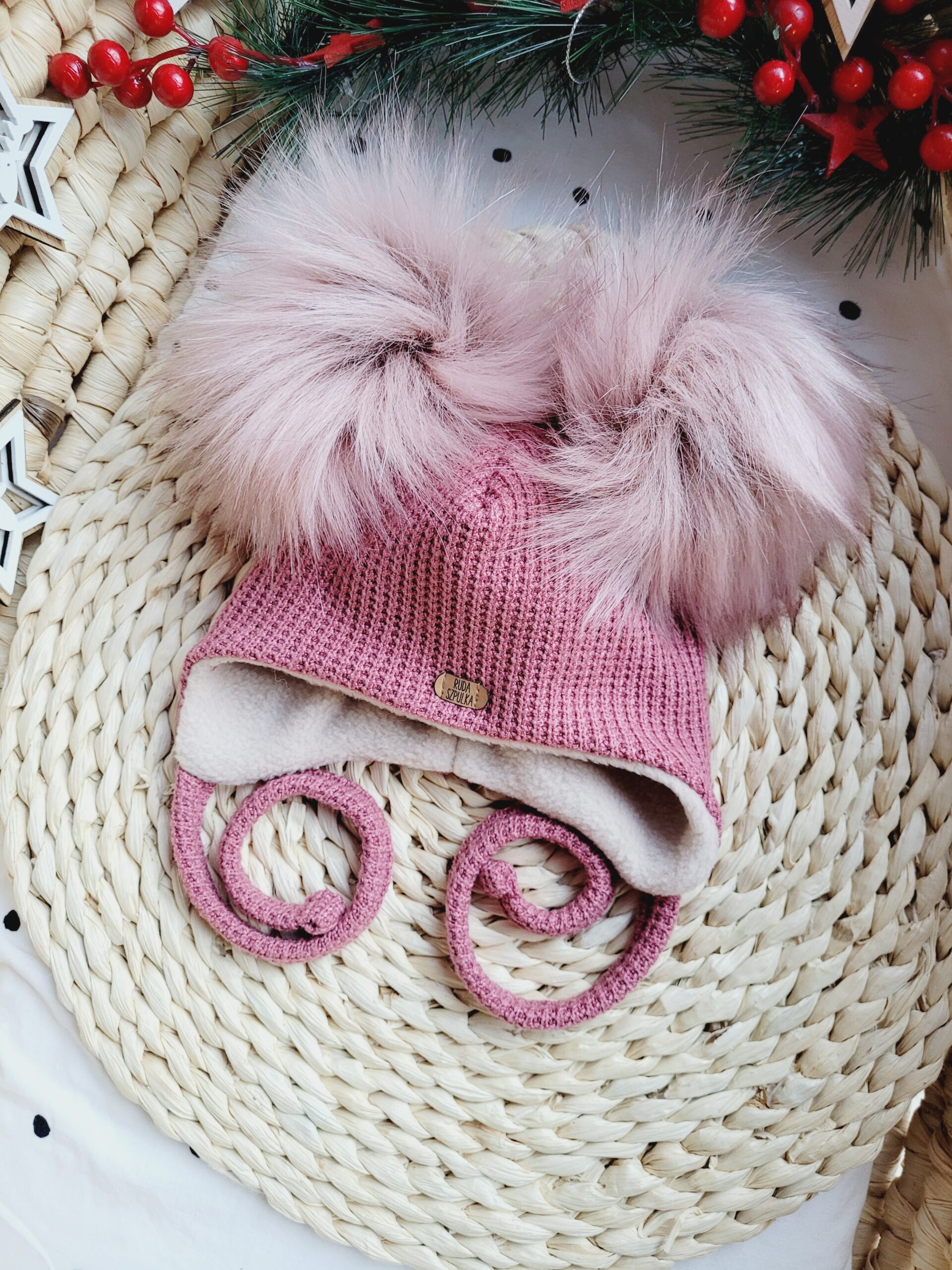 Czapka wiązana dla dziewczynki w kolorze róż wrzosowy z jednym lub dwoma pomponami do wyboru. Rozmiary 36-52.