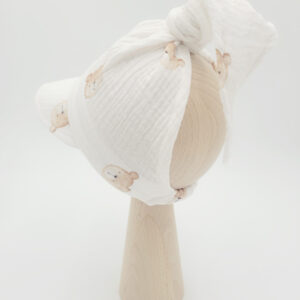 Model wykończony z tyłu kokardą, która dodaje mu uroku. Istnieje możliwość dodania wiązania, co pozwala lepiej dopasować kapelusz do główki dziecka i zapobiega jego zsuwaniu.