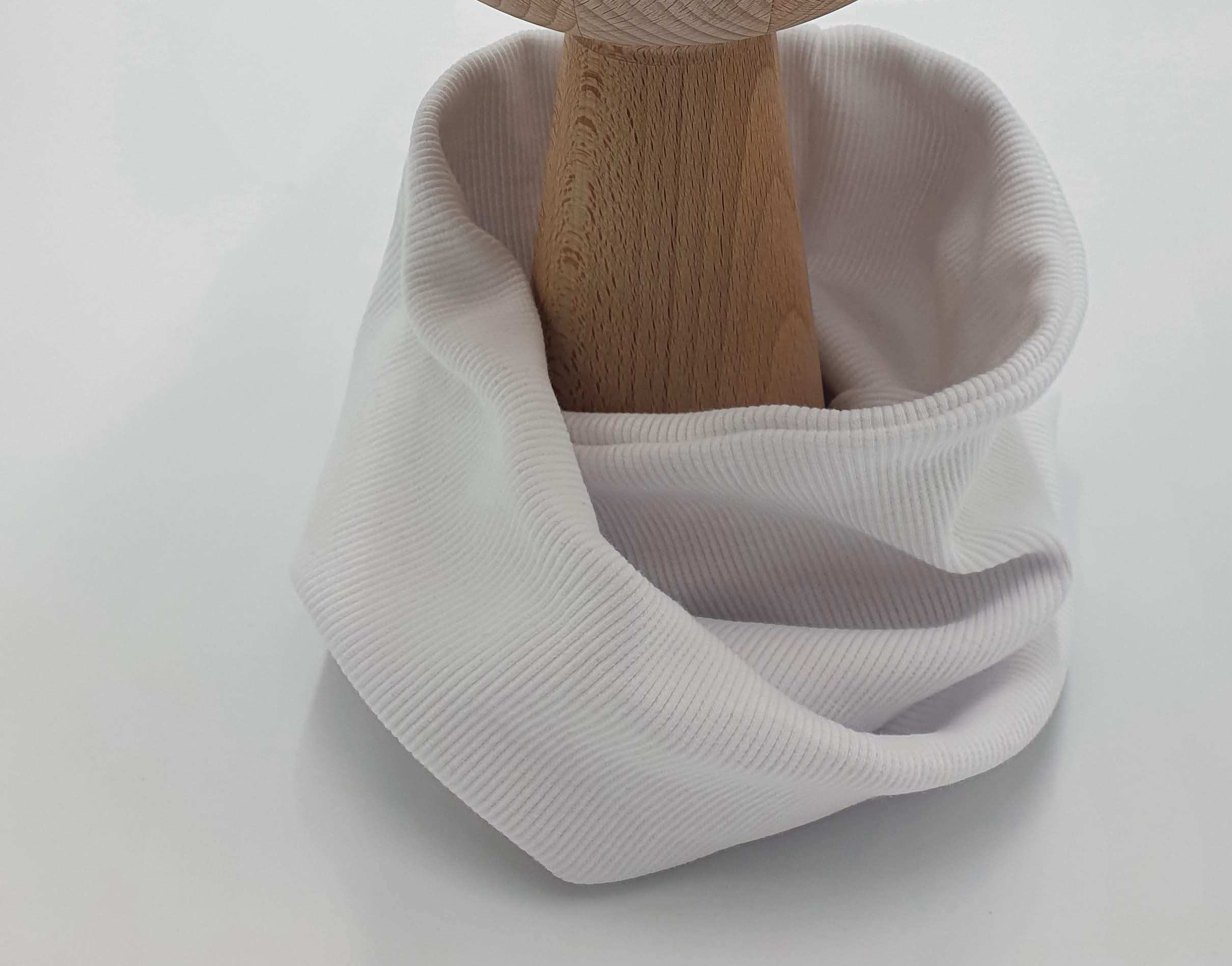 Nasz komin prążkowany dla dzieci i niemowląt w kolorze białym to idealny dodatek na sezon wiosenny i jesienny. Uszyty z dwóch warstw wysokiej jakości dzianiny prążkowanej, zapewnia ciepło i komfort noszenia.