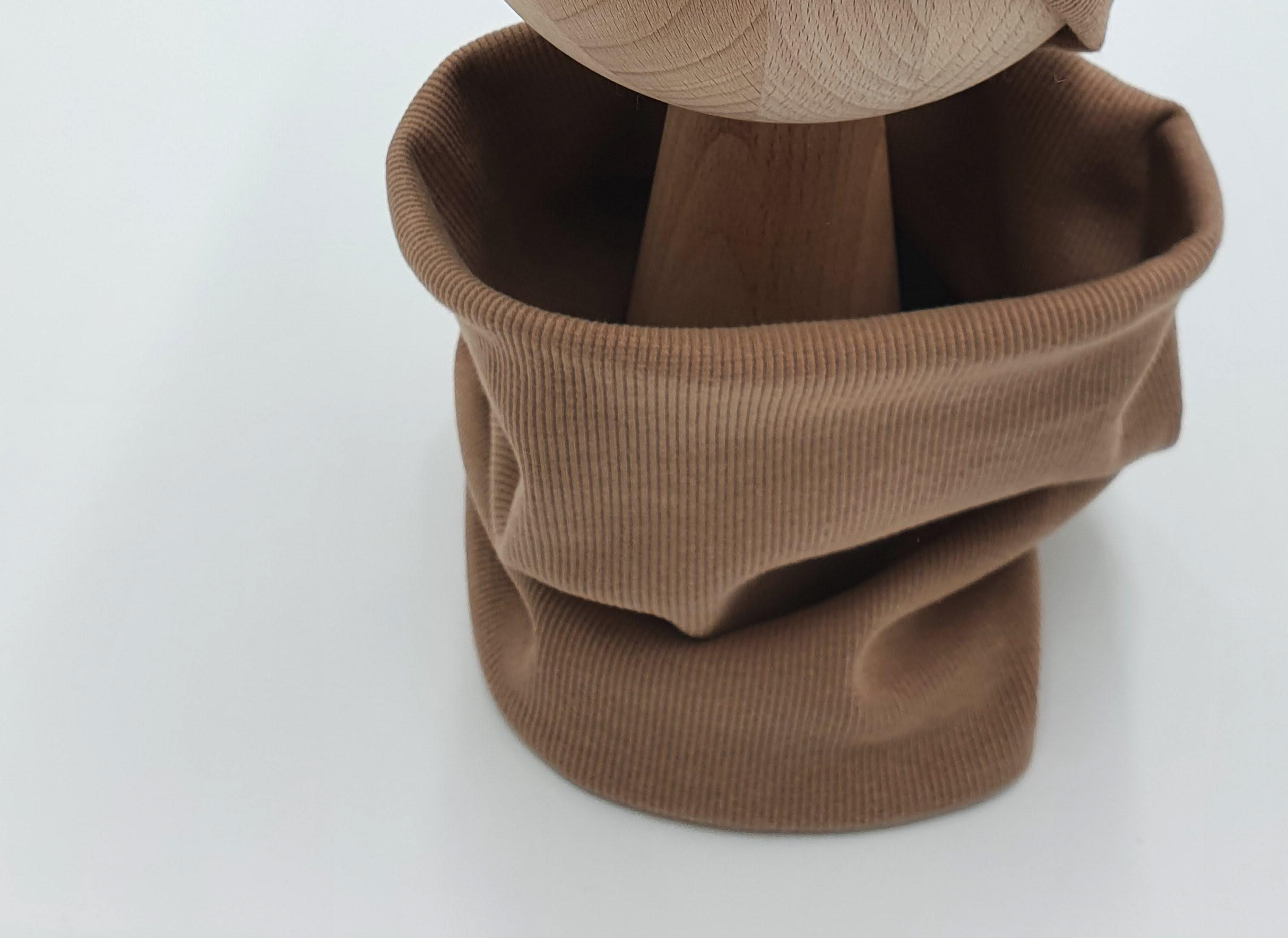 Komin z dzianiny prążkowanej w kolorze ciemny beż.