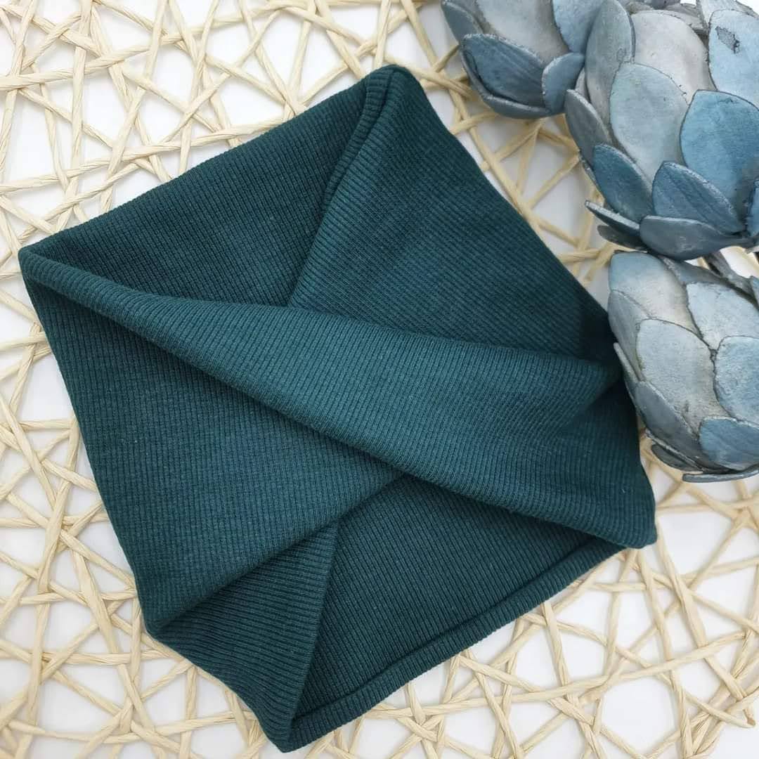 Komin wykonany z dzianiny prążkowanej w wybranym kolorze.