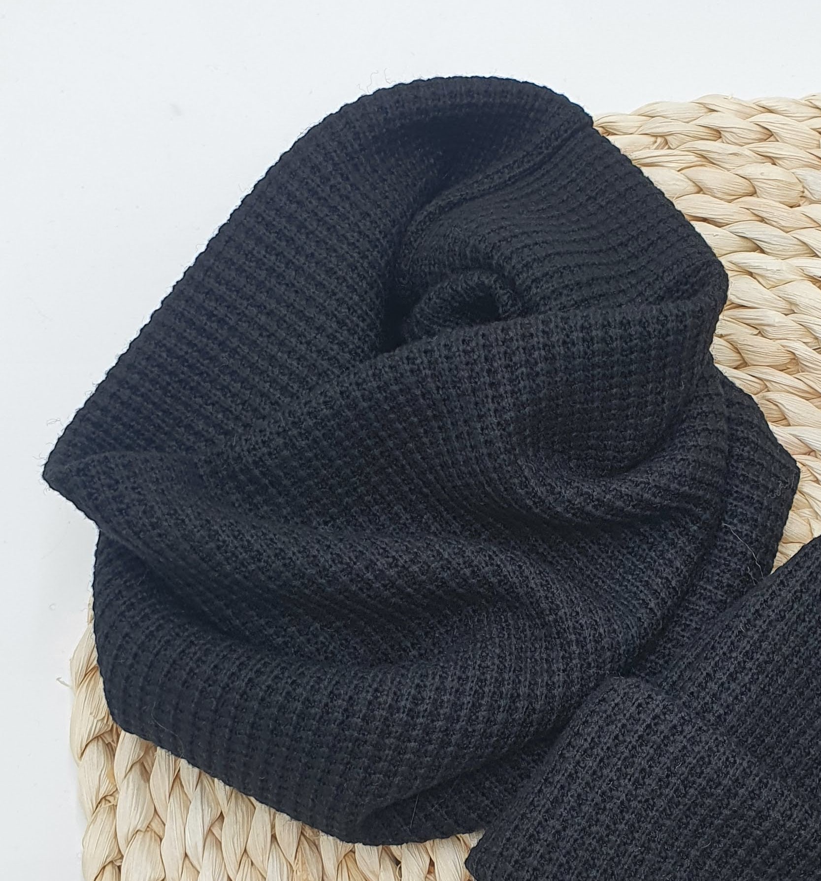 Komin z dzianiny sweterkowej w kolorze czarnym, możliwość podszycia polarem.