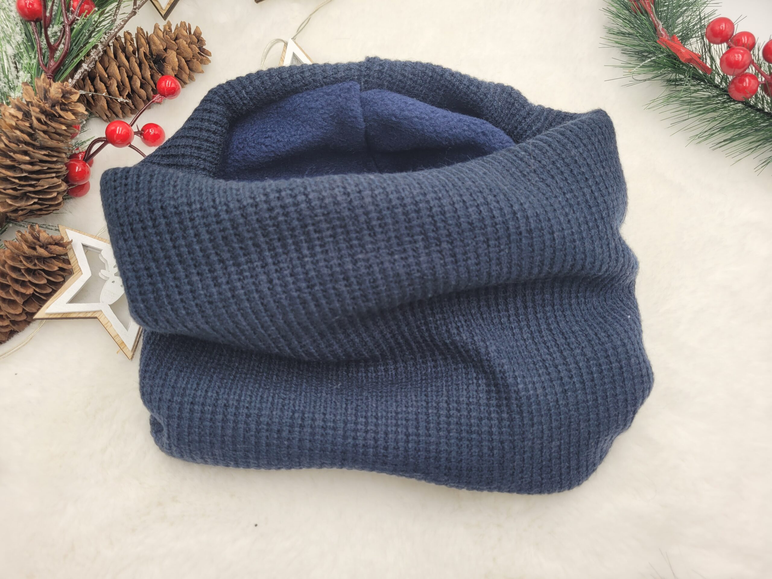 Komin zimowy z dzianiny sweterkowej w kolorze granatowym.