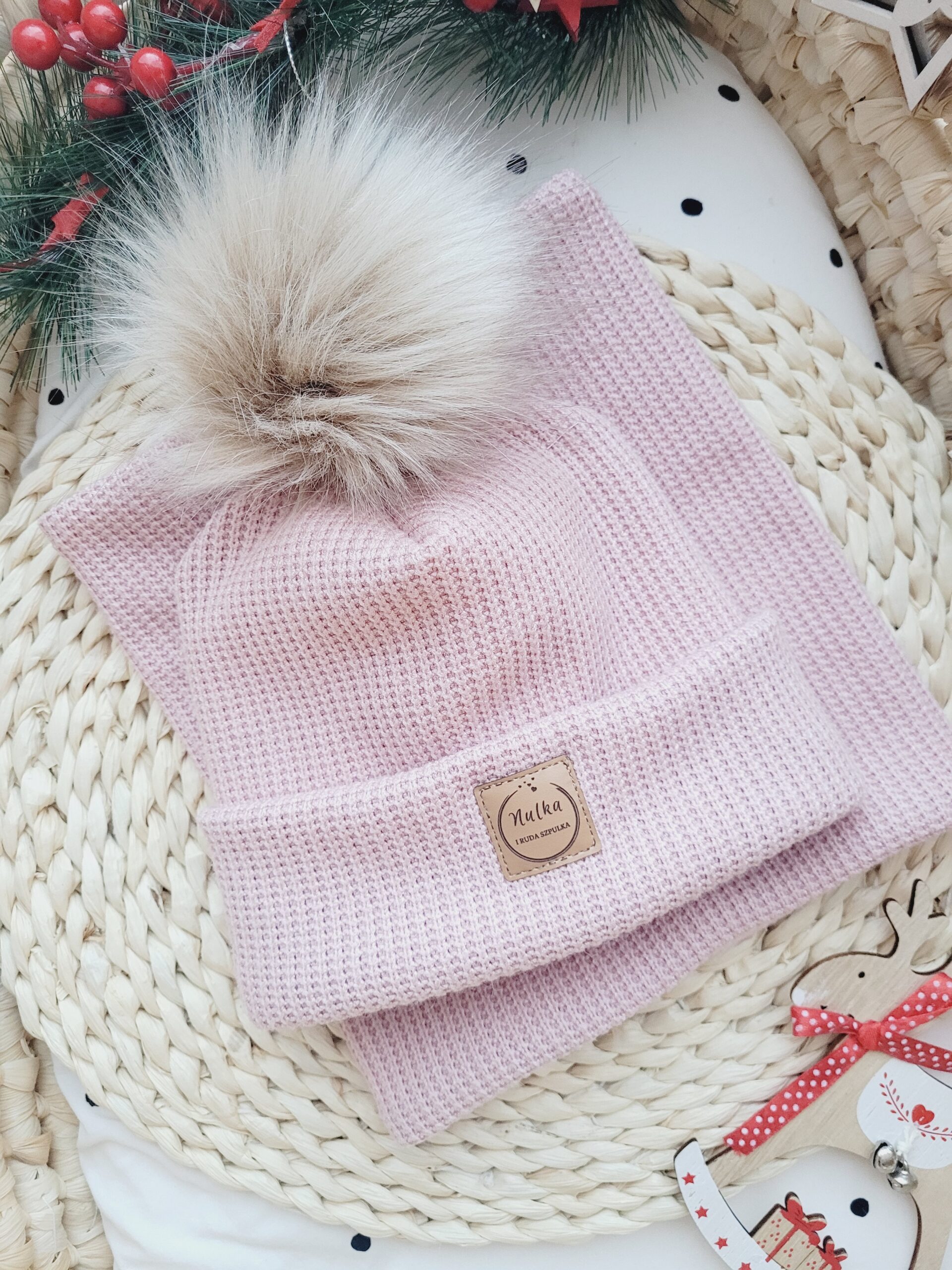 Zimowy komin dla dziewczynki w kolorze pastelowy róż. Możliwość podszycia polarem.