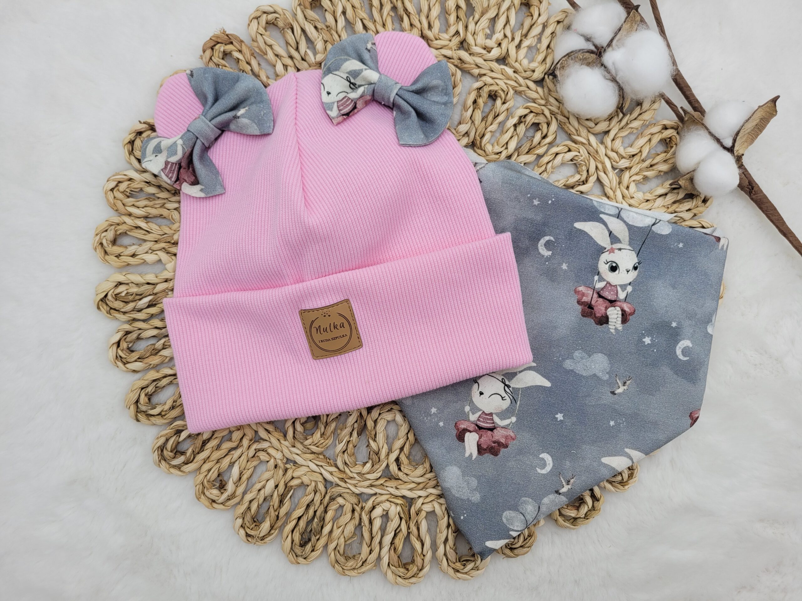 Czapka ozdobiona misiowymi uszkami z dwoma małymi kokardkami wzór Dream bunny, które dodają uroku i sprawiają, że czapka wygląda mega dziewczęco. Czapka może być klasyczna lub z wiązana z nausznikami.
