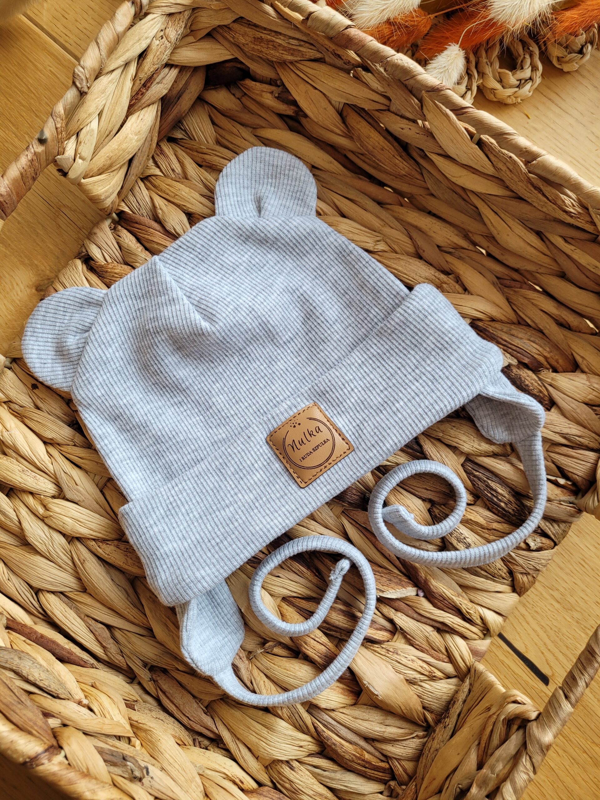 Czapeczki wiązane z misiowymi uszkami szyjemy również w wersji z kokardkami.