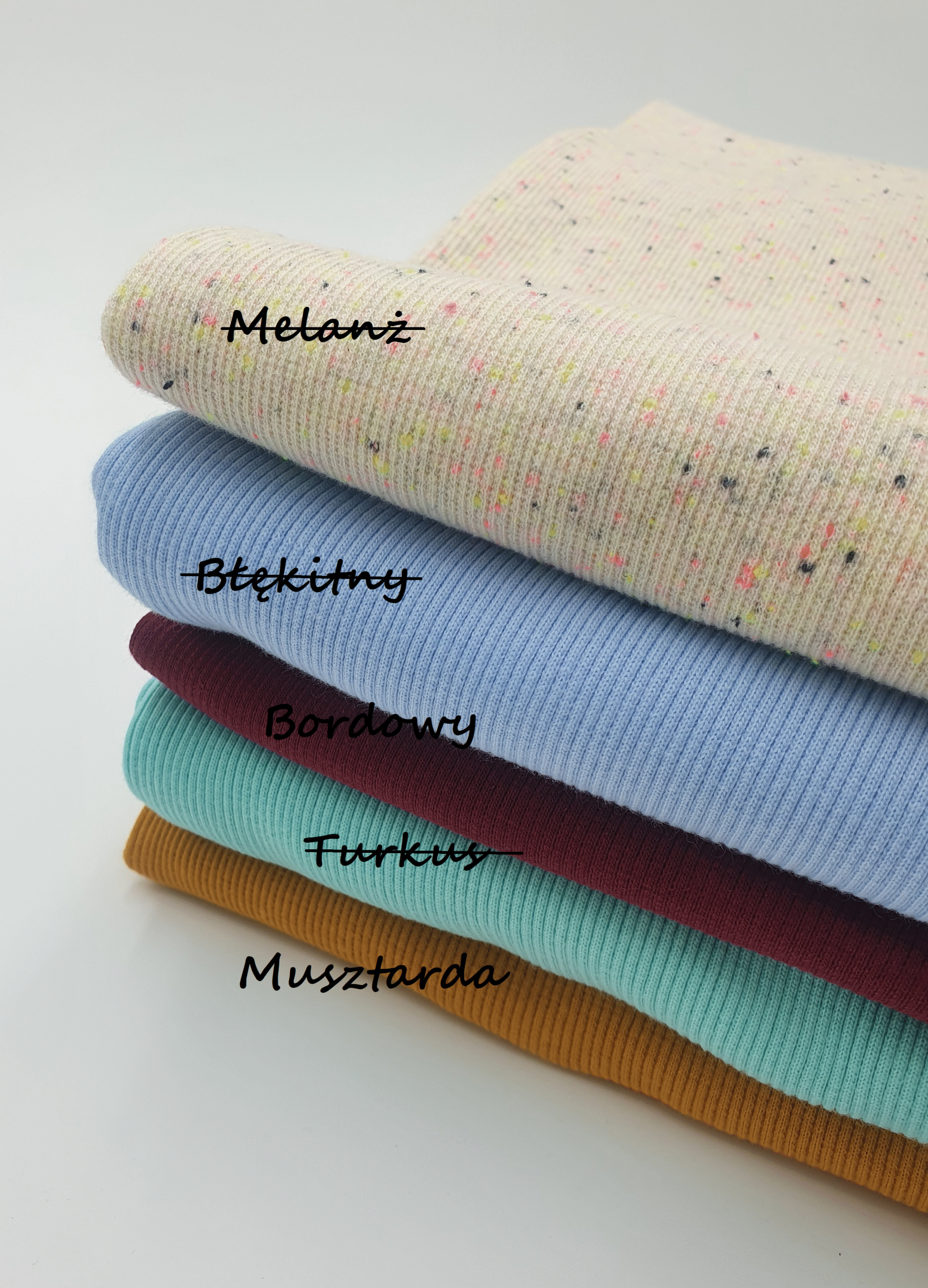 Komplety uszyte są z dzianiny prążkowanej premium posiadającej certyfikat OekoTex standard 100 bezpieczny dla dziecka.