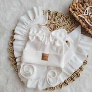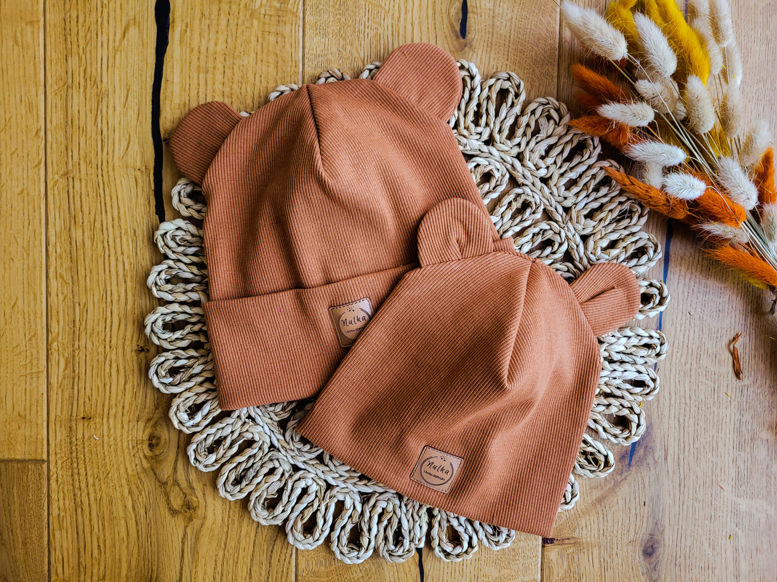 Jeśli chcesz aby komplet był cieplejszy, bardziej zimowy wybierz model z podwójnej warstwy materiału z wywinięciem, na uszkach będą wówczas aż cztery warstwy materiału, Twój maluch na pewno nie zmarznie w niej w zimowe dni. Dodatkowo czapka może mieć wiązanie z nausznikami.