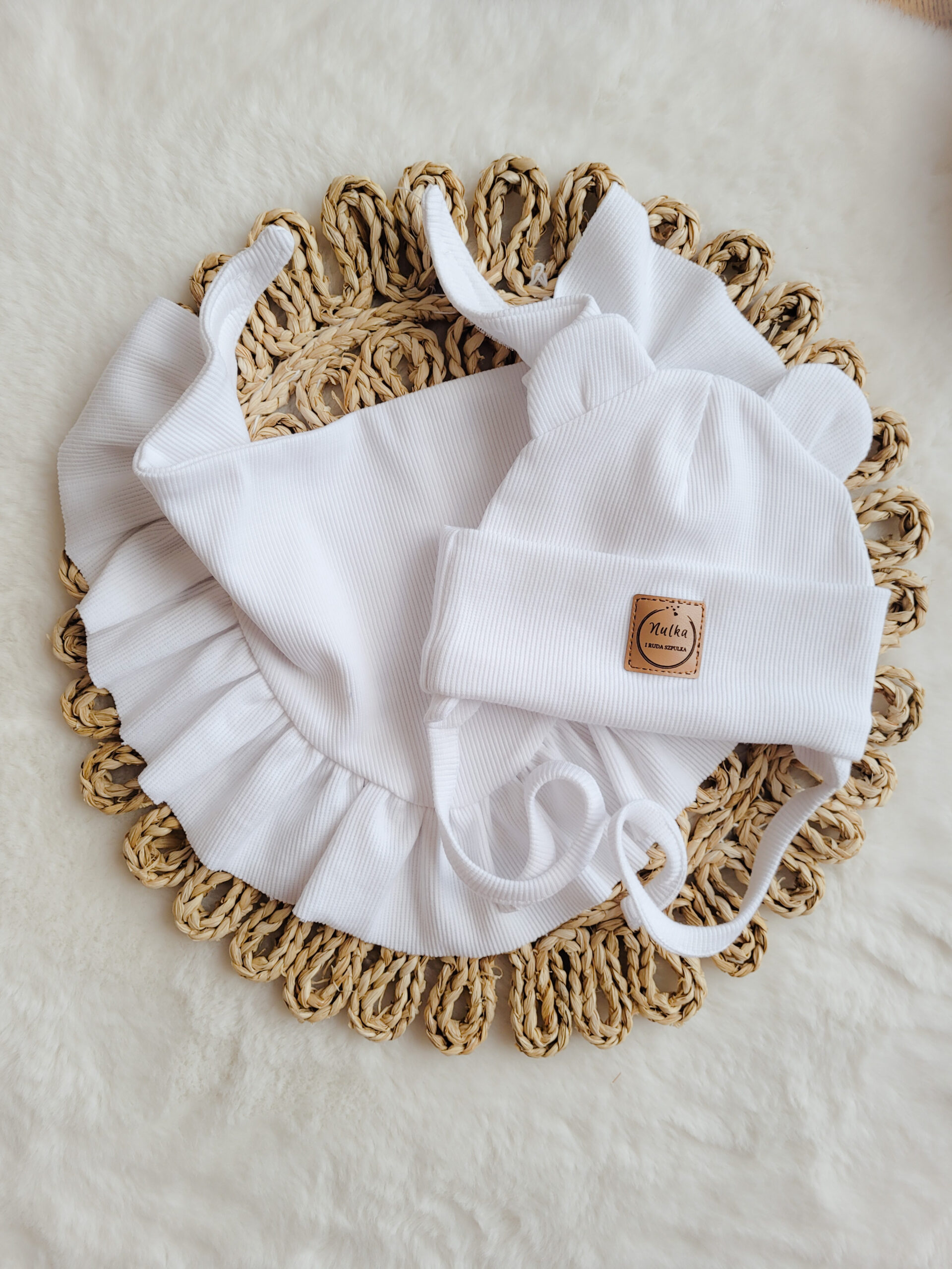 Komplety uszyte są z dzianiny prążkowanej premium posiadającej certyfikat OekoTex standard 100 bezpieczny dla dziecka.