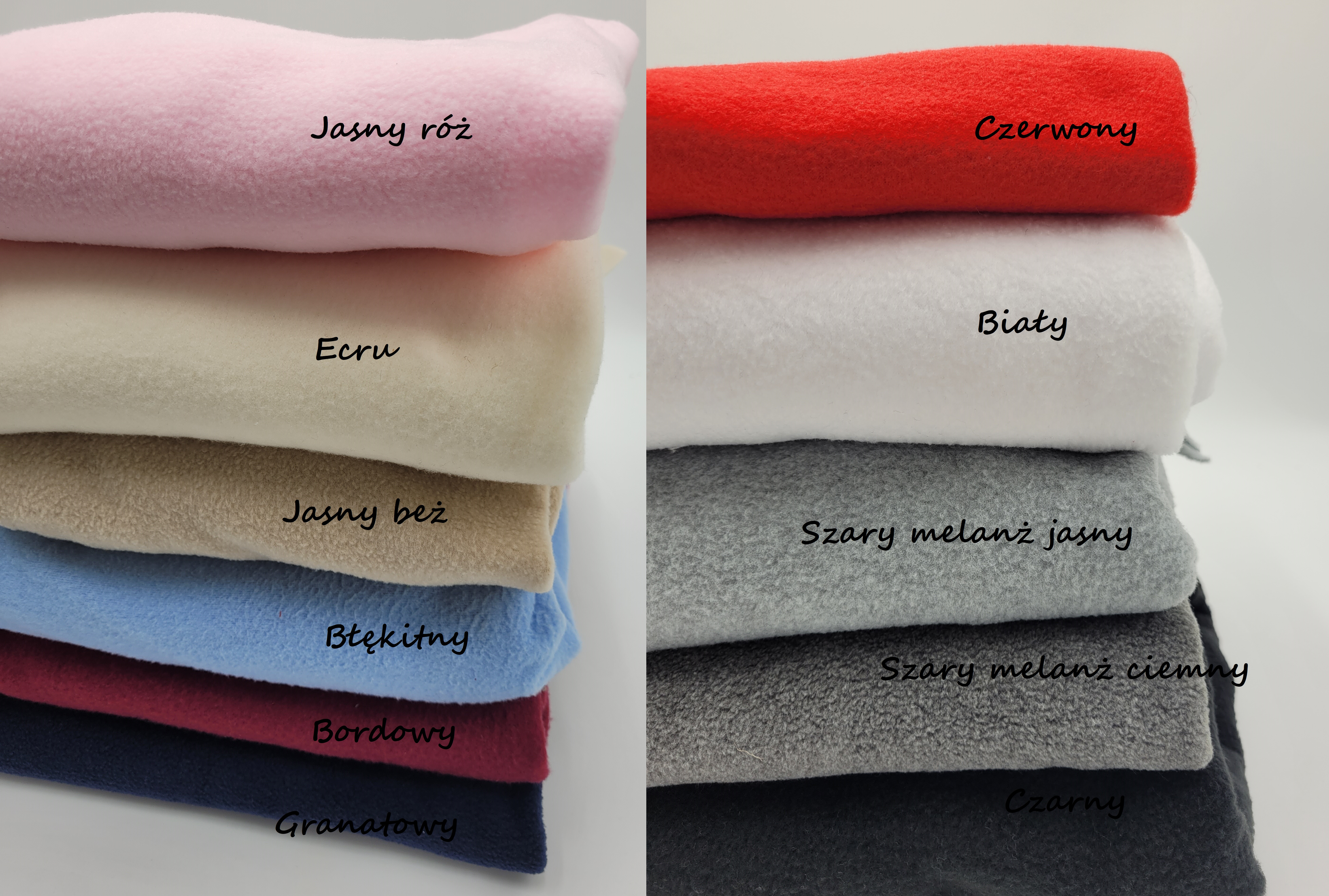 Komplet może być podszyty miękkim polarem w wybranym kolorze, co zapewnia doskonałe właściwości termoizolacyjne. Polar jest elastyczny, miękki i bezpieczny dla alergików, co czyni go idealnym wyborem na chłodniejsze dni.