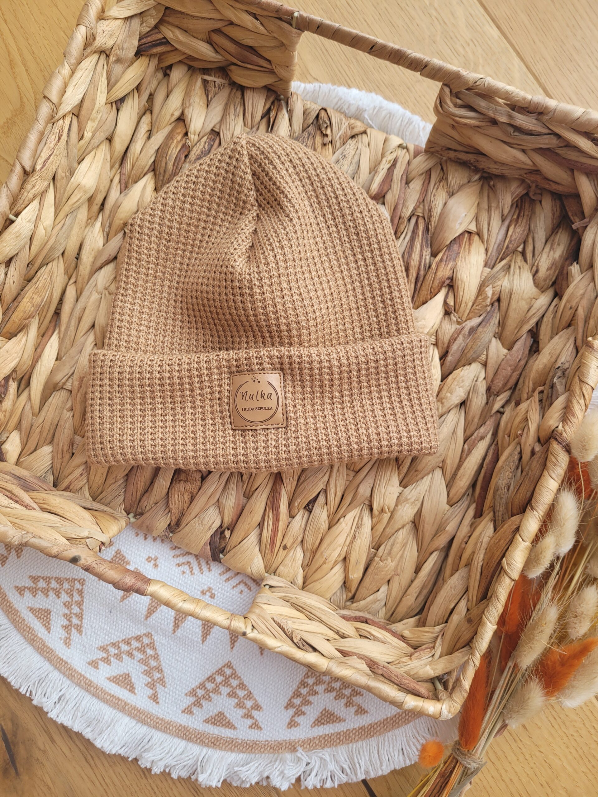 Każda czapka ma naszywkę z logo Nulka i Ruda Szpulka, co podkreśla naszą dbałość o detale.