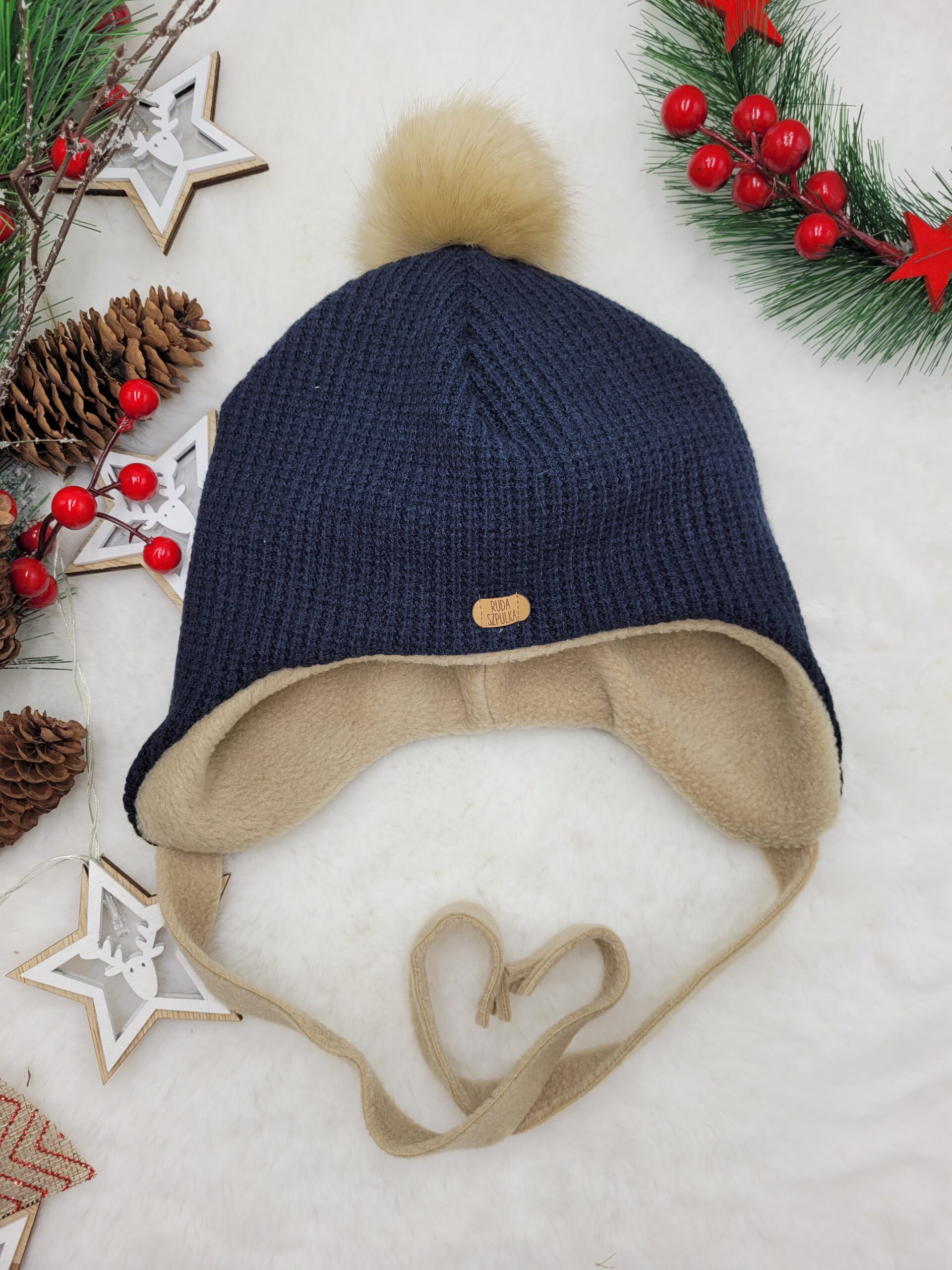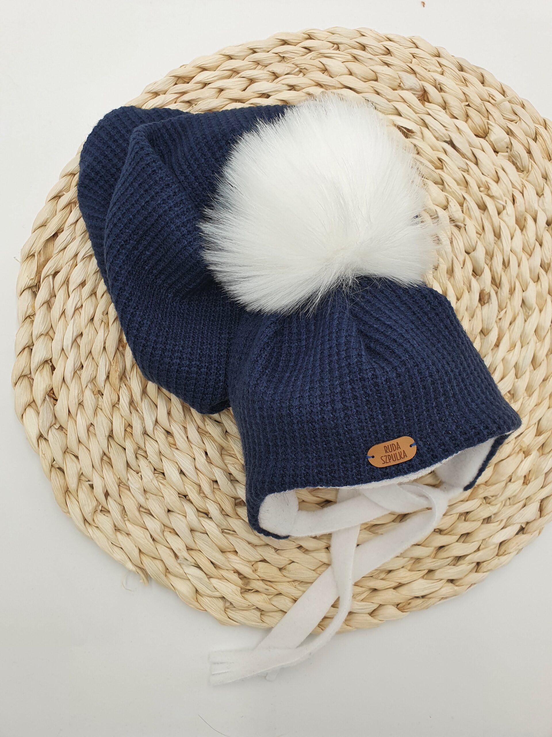 Napisz pierwszą opinię o „Komplet zimowy z pomponami dla dziecka wiązany – granat”