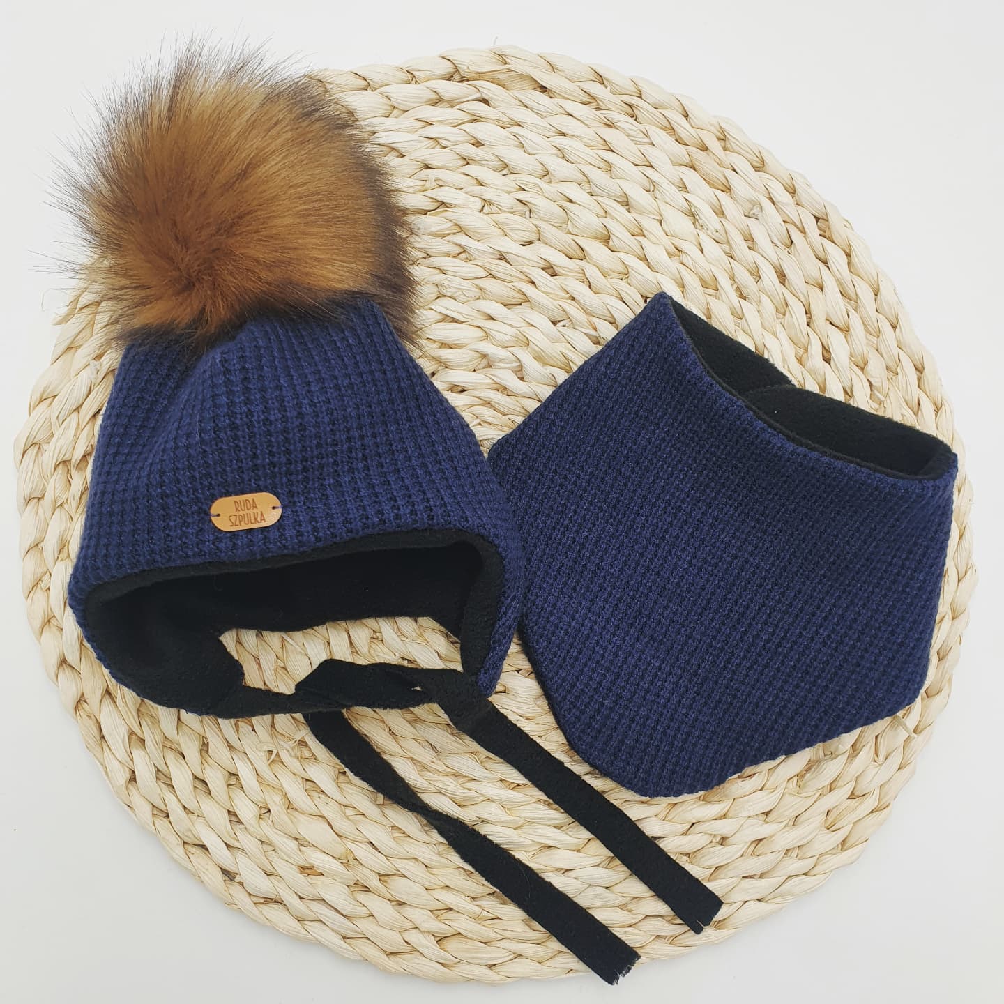 Zapewnij swojemu dziecku nie tylko ciepło, ale także wyjątkowy styl dzięki zimowemu kompletowi wiązanemu z pomponami. Wykonany z miękkiej dzianiny sweterkowej w kolorze granatowym, to idealny wybór zarówno dla chłopców, jak i dziewczynek.