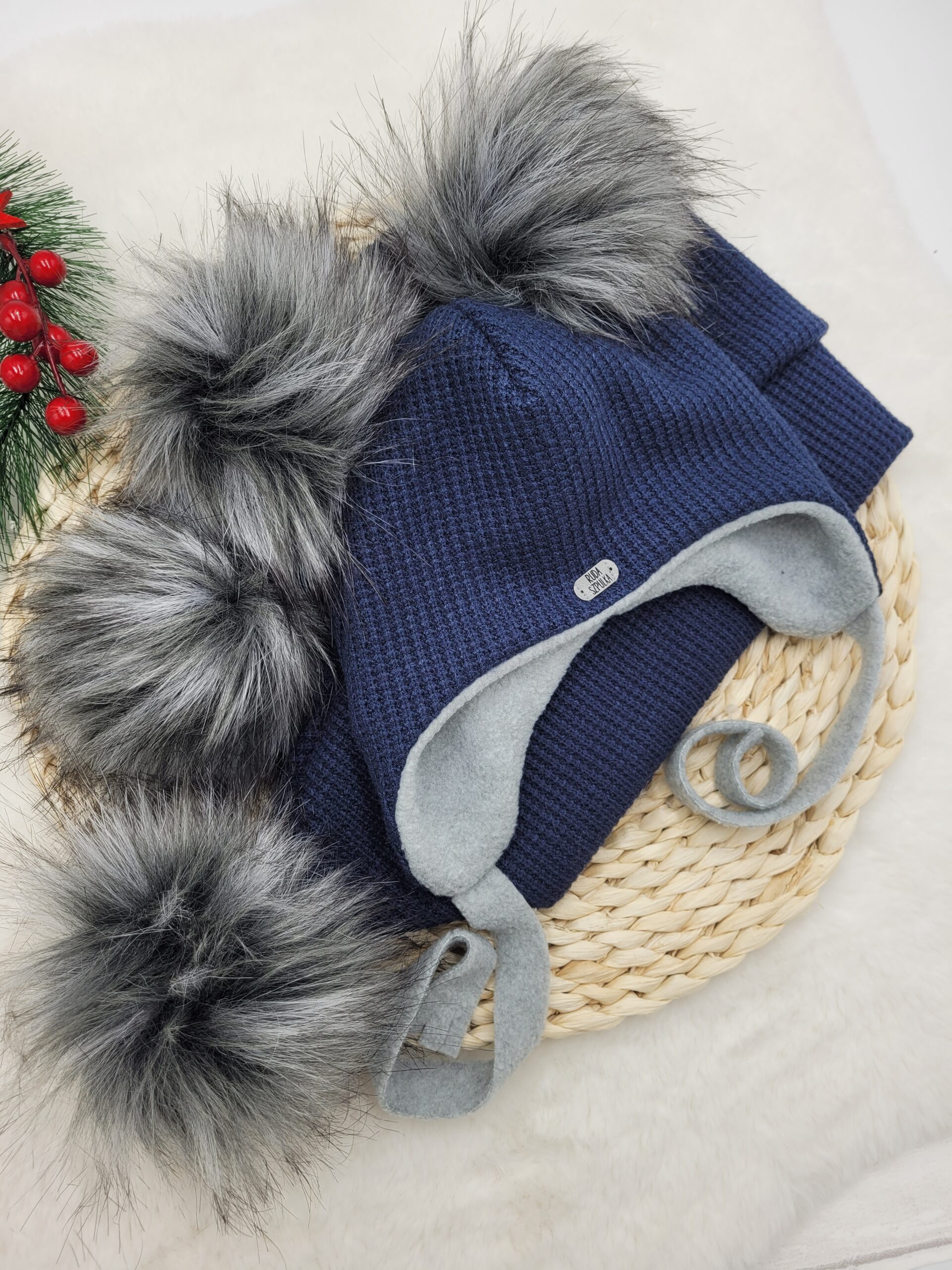 Podaruj dziecku ciepło i wygodę tej zimy! Zamów komplet zimowy wiązany z pomponami i ciesz się jego funkcjonalnością oraz wyjątkowym stylem podczas zimowych spacerów i zabaw.