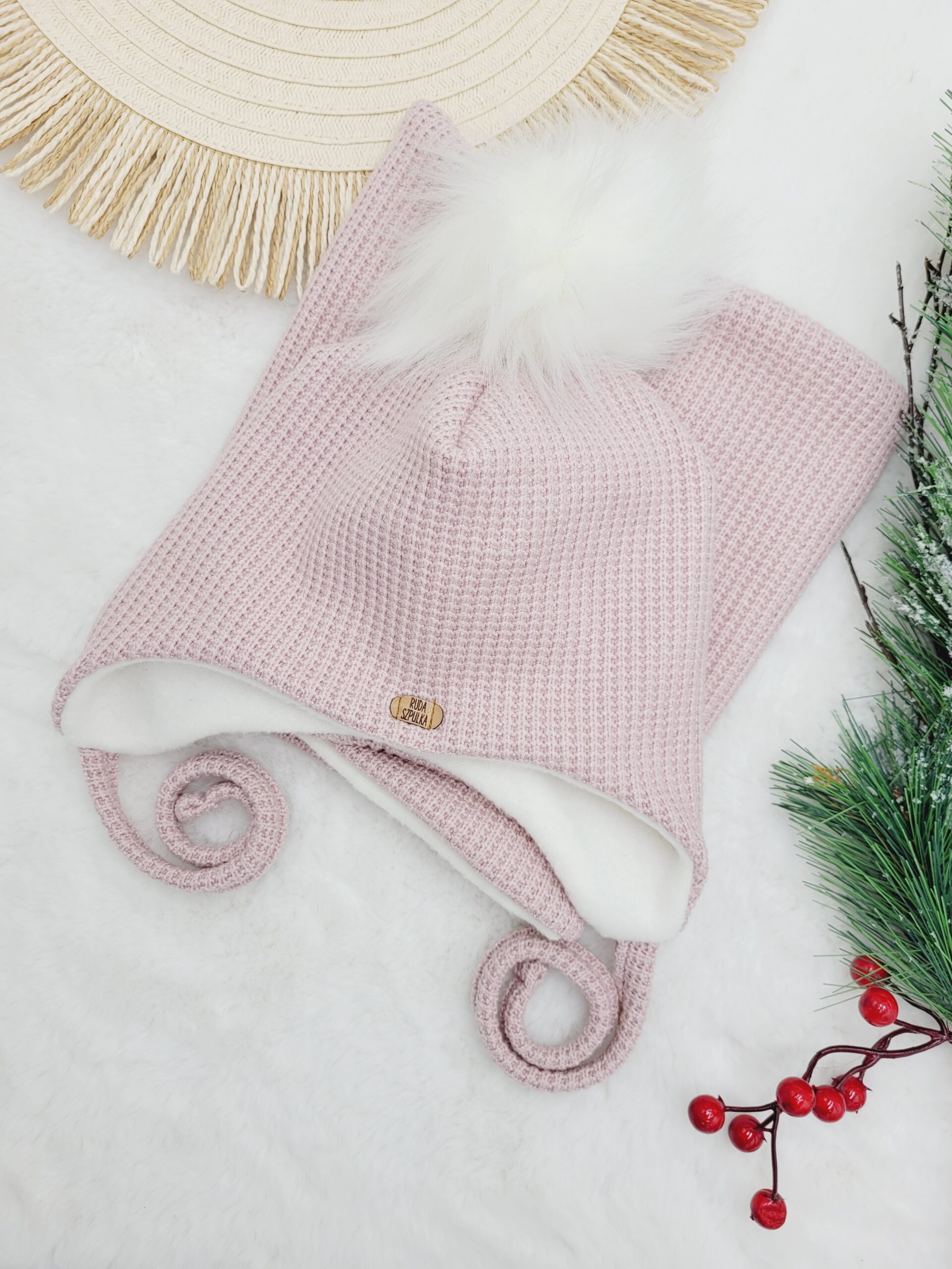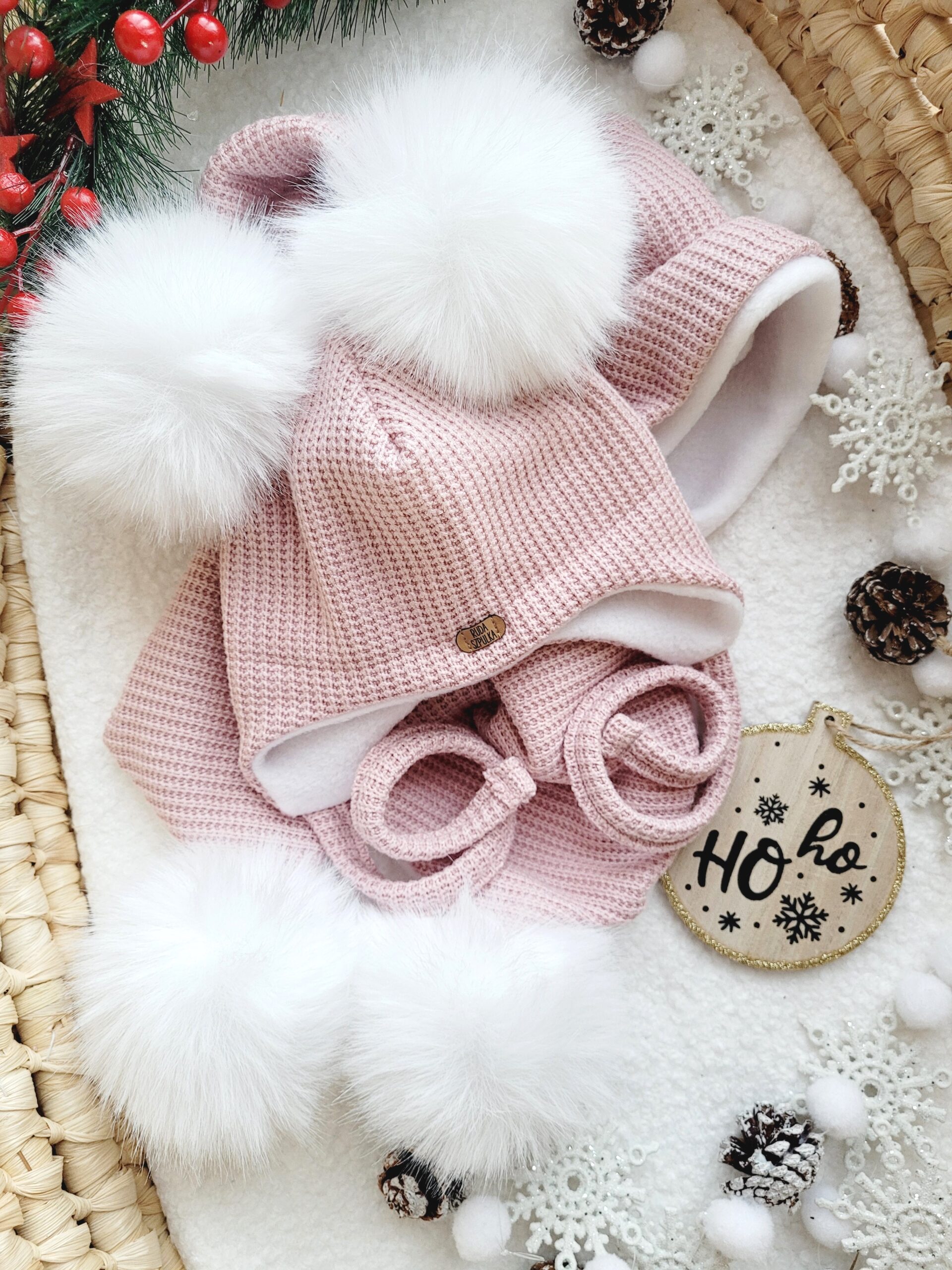 Napisz pierwszą opinię o „Komplet zimowy z pomponami dla dziewczynki wiązany – róż pastelowy”