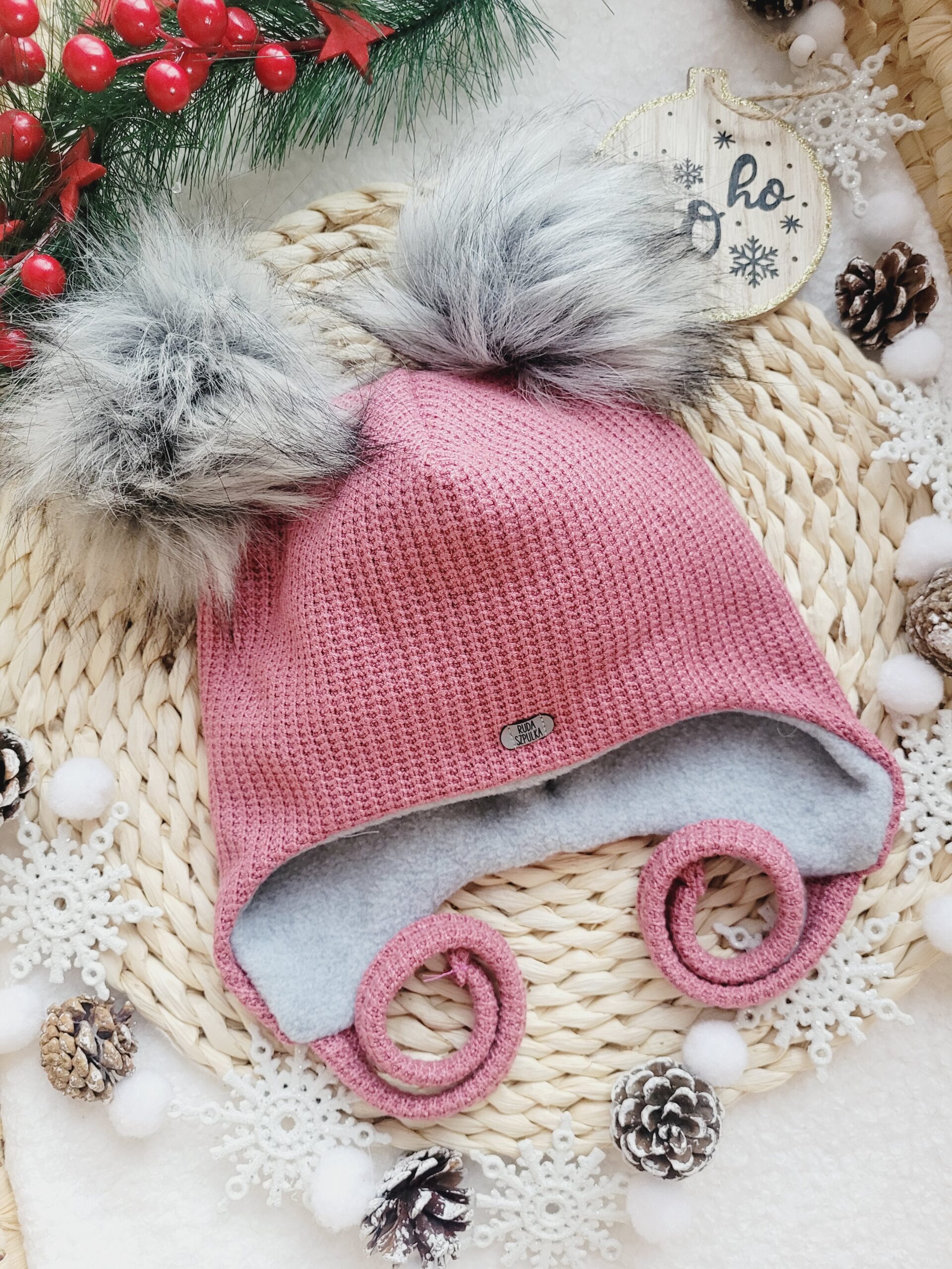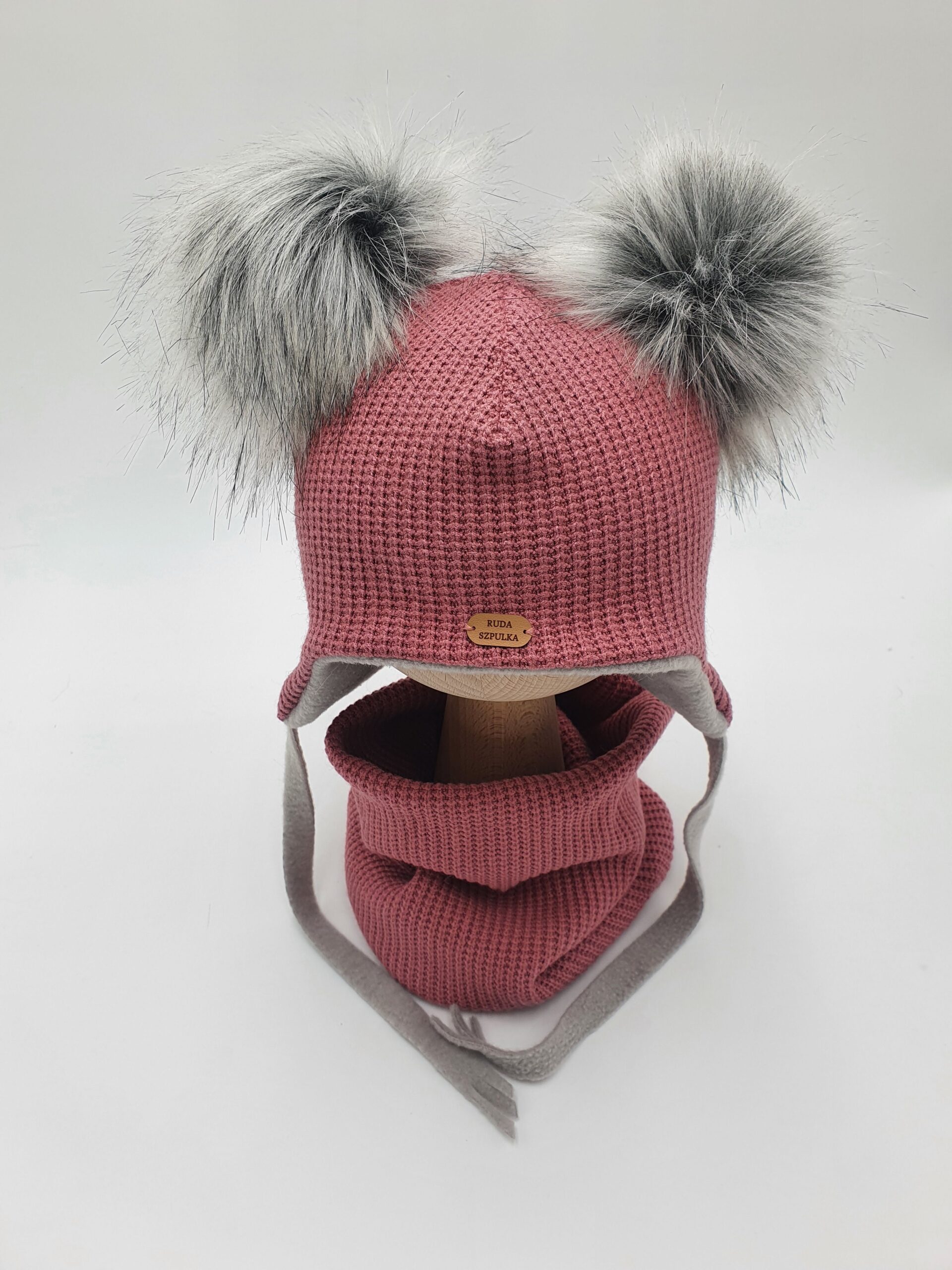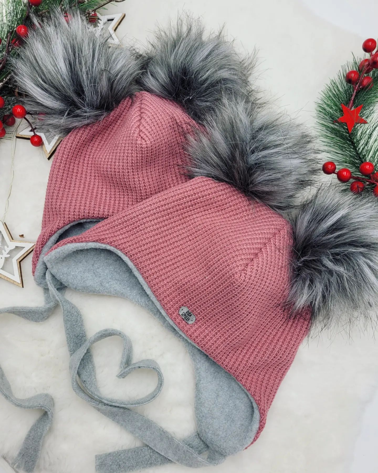 Napisz pierwszą opinię o „Komplet zimowy z pomponami dla dziewczynki wiązany – róż wrzosowy”