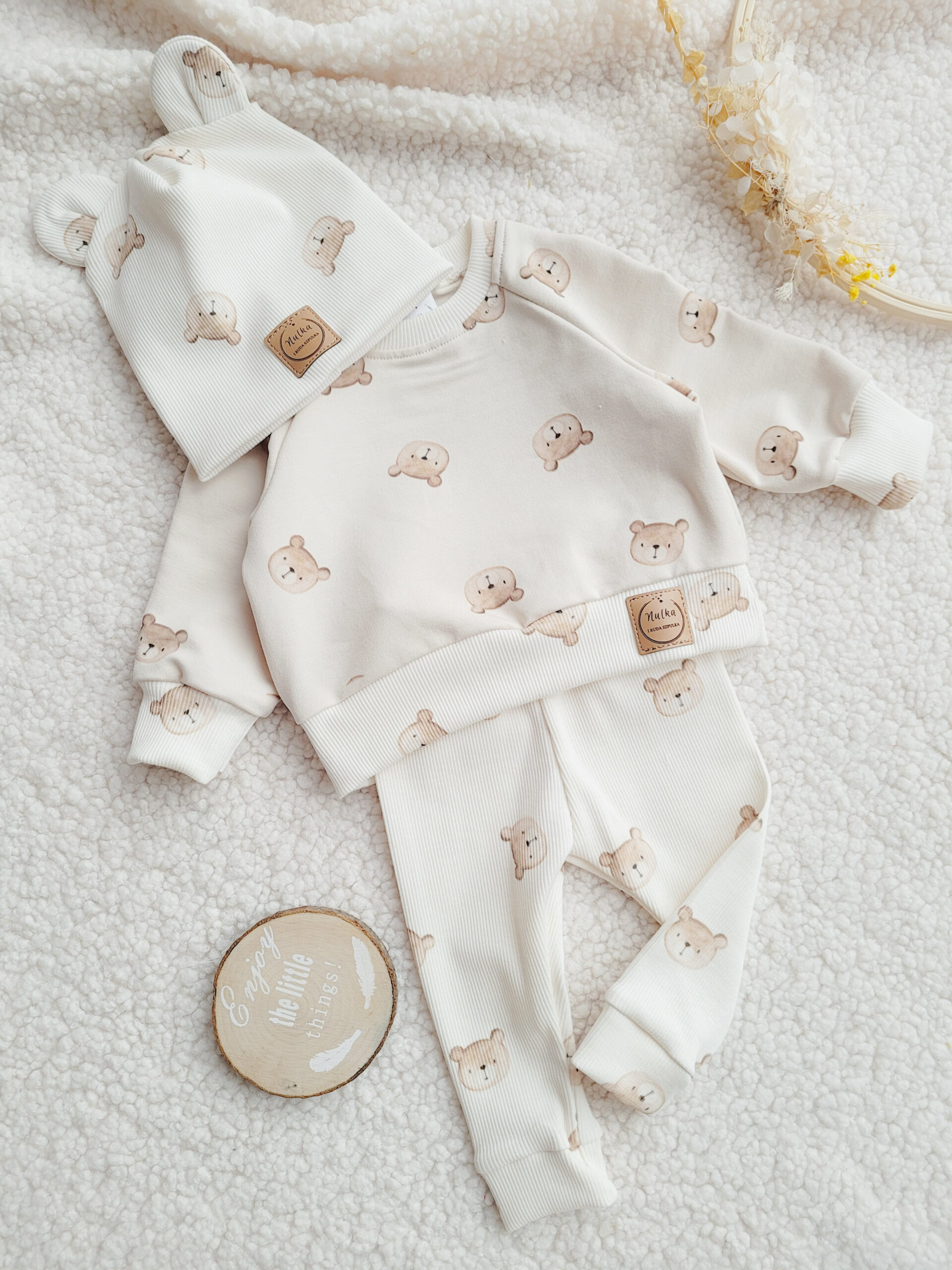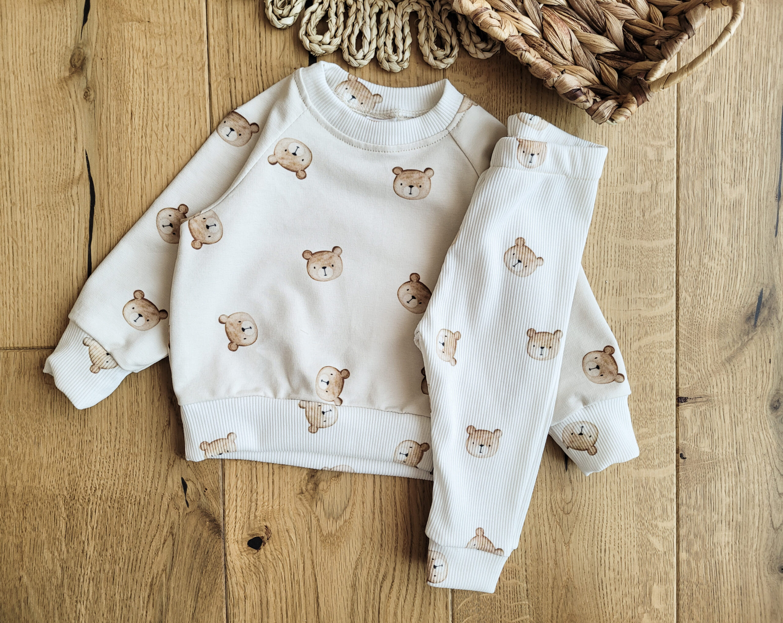 Uniwersalny design sprawia, że legginsy te pasują zarówno chłopcom, jak i dziewczynkom, dodając uroku każdej stylizacji. Wzór misiów na prążkowanej dzianinie w kolorze ecru nadaje im wyjątkowego uroku, co czyni je nie tylko wygodnym elementem garderoby, ale także ozdobą wielu stylizacji.