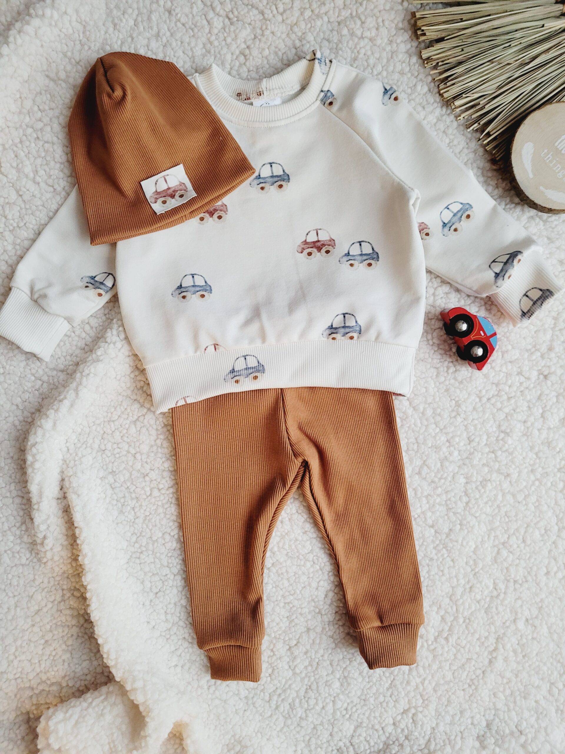 Dziecięce legginsy prążkowane w kolorze cynamonowym w rozmiarach 56-122.