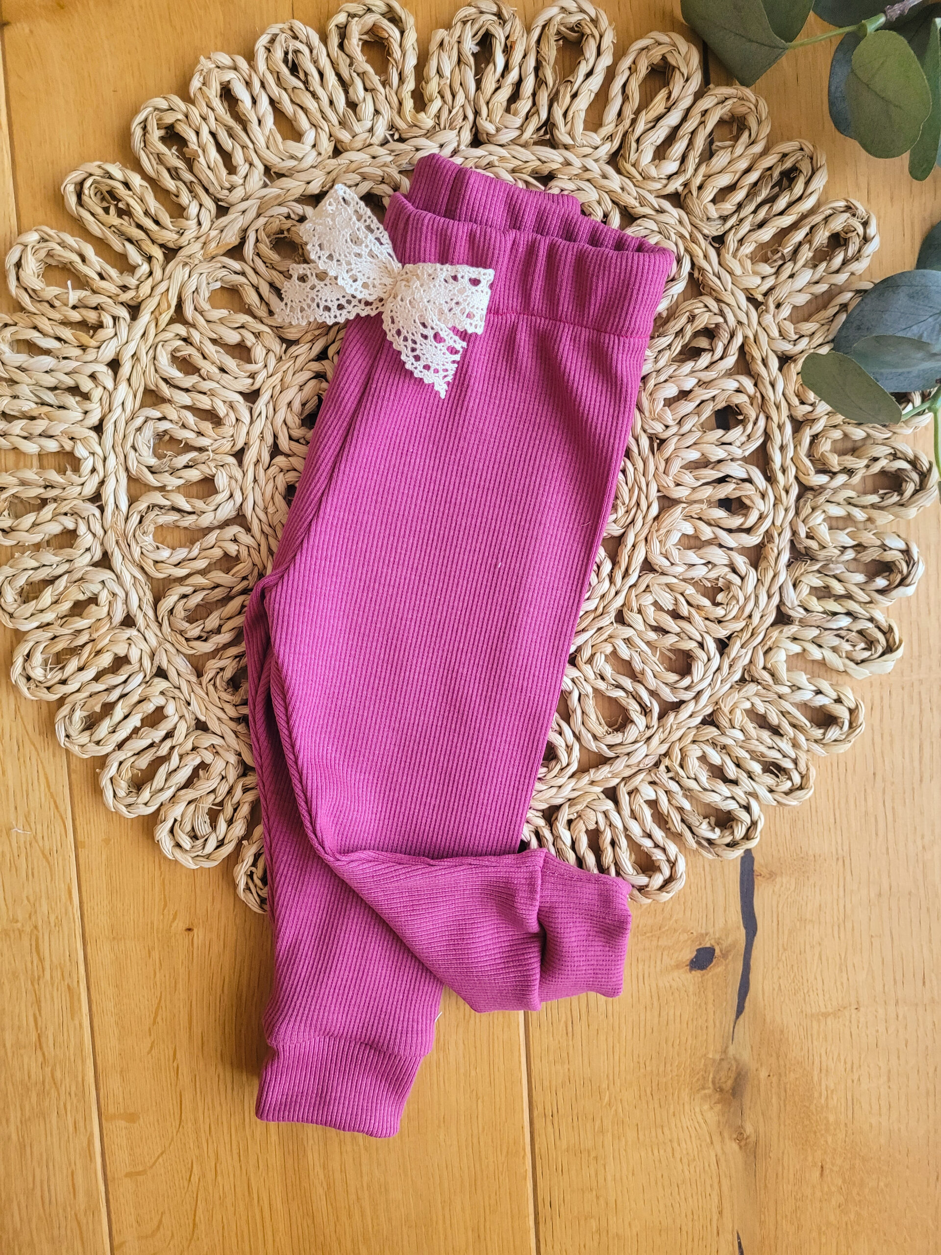 Dziecięce legginsy prążkowane w kolorze wrzosowy róż w rozmiarach 56-122.