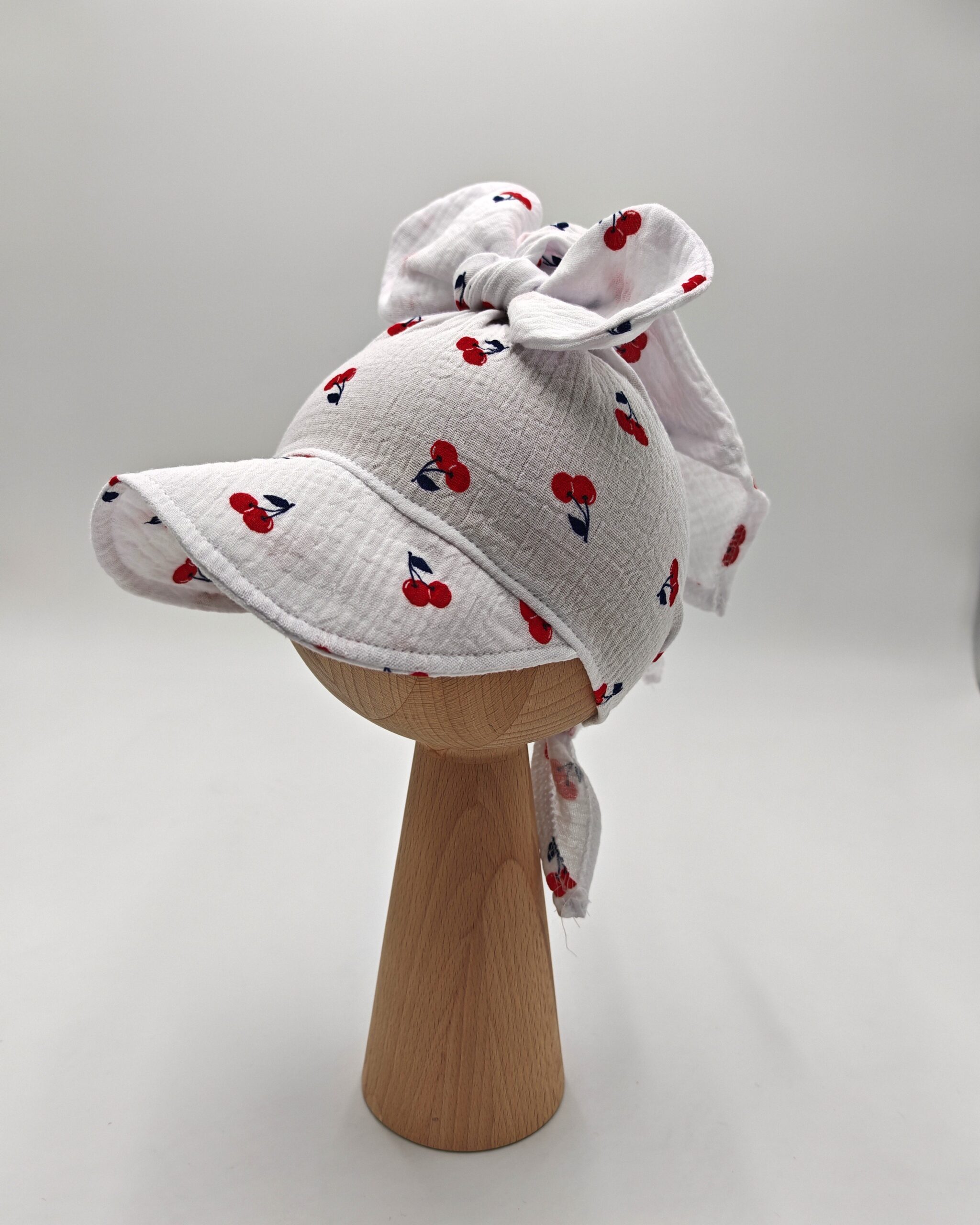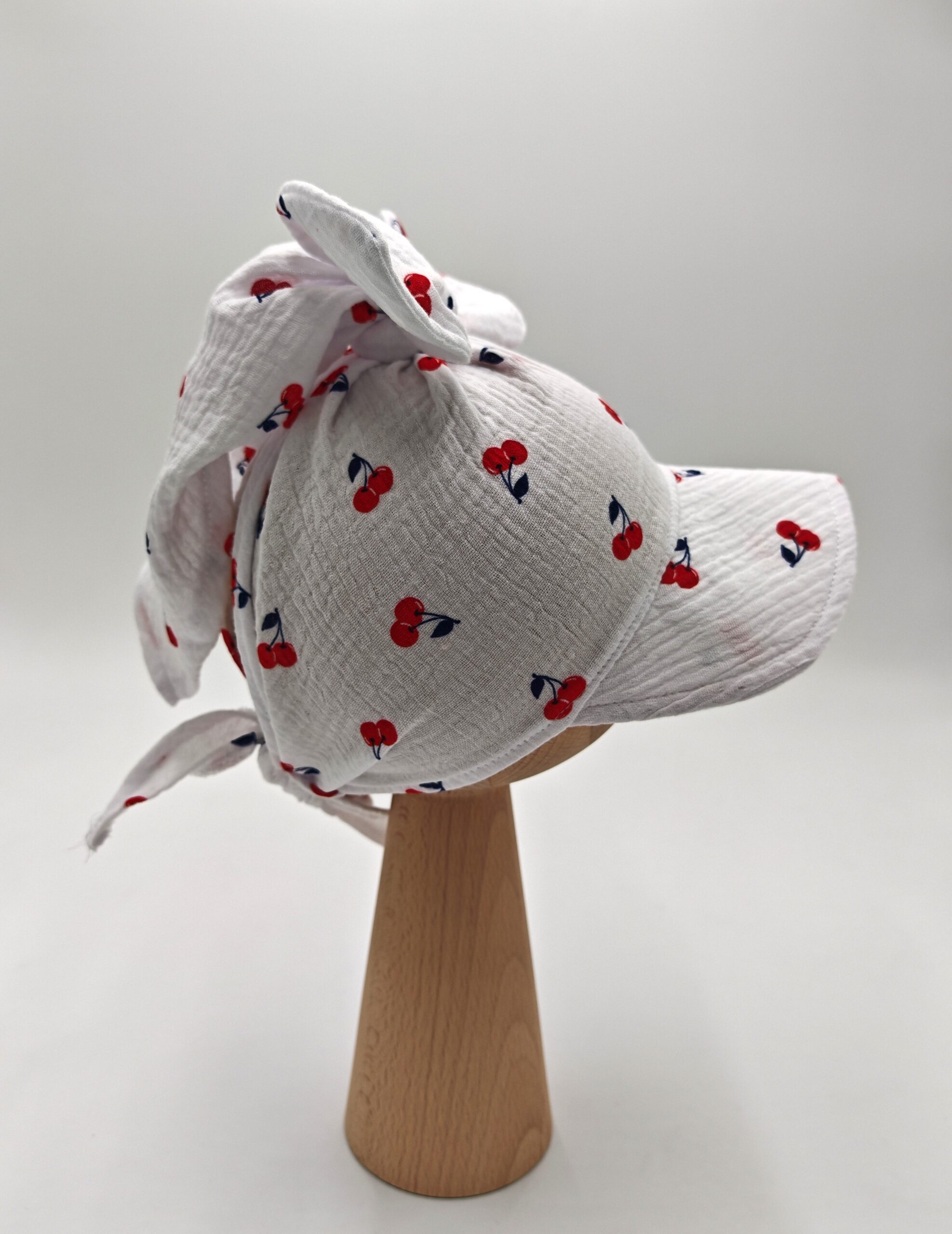 Letnia chustka z daszkiem dla dziewczynki – wzór wisienki