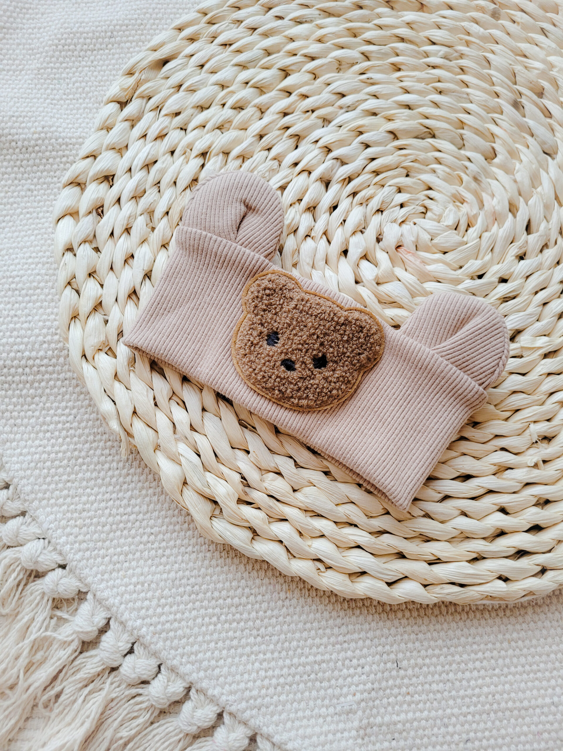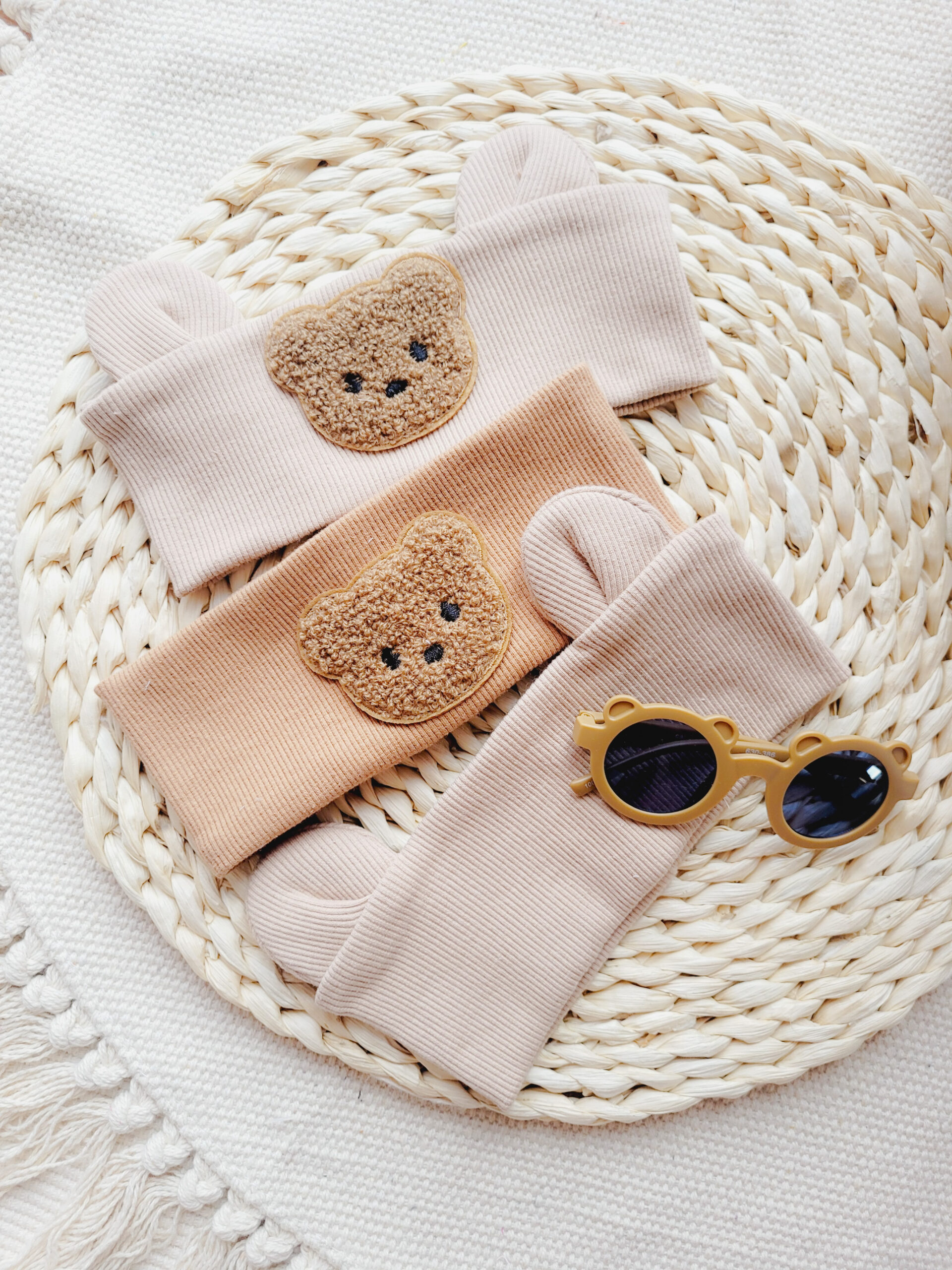 Opaska Prążkowana dla Chłopca z Misiowymi Uszkami i Naszywką Misia – Kolory do wyboru