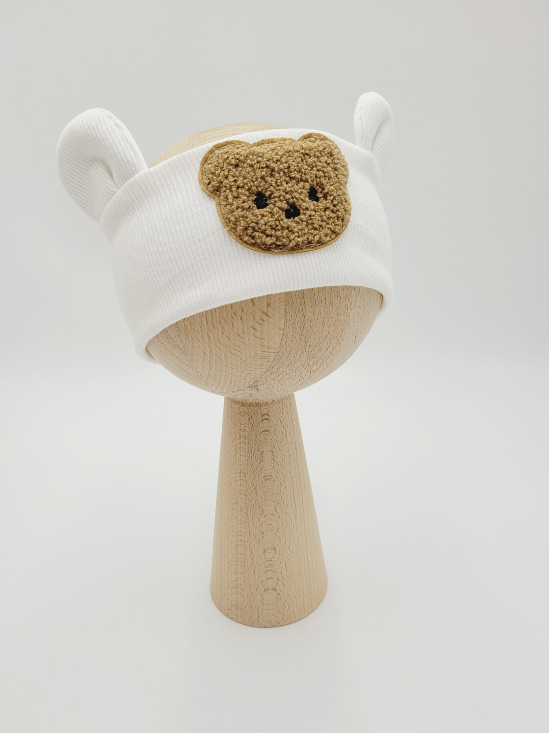 Opaska prążkowana z uszami z naszywką w kształcie misia.