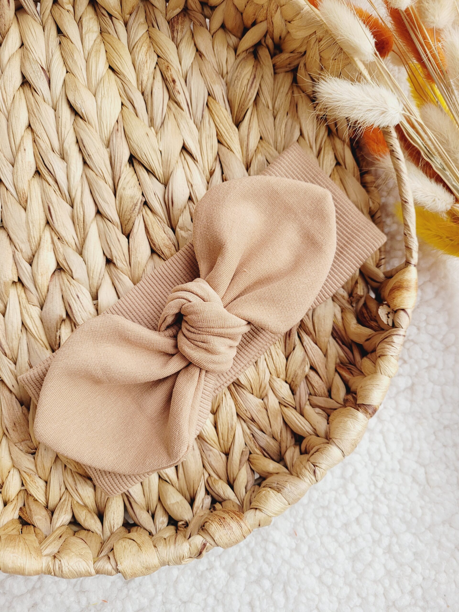 Opaska z gładką kokardą pin-up wykonana z dzianiny prążkowanej w wybranym kolorze.