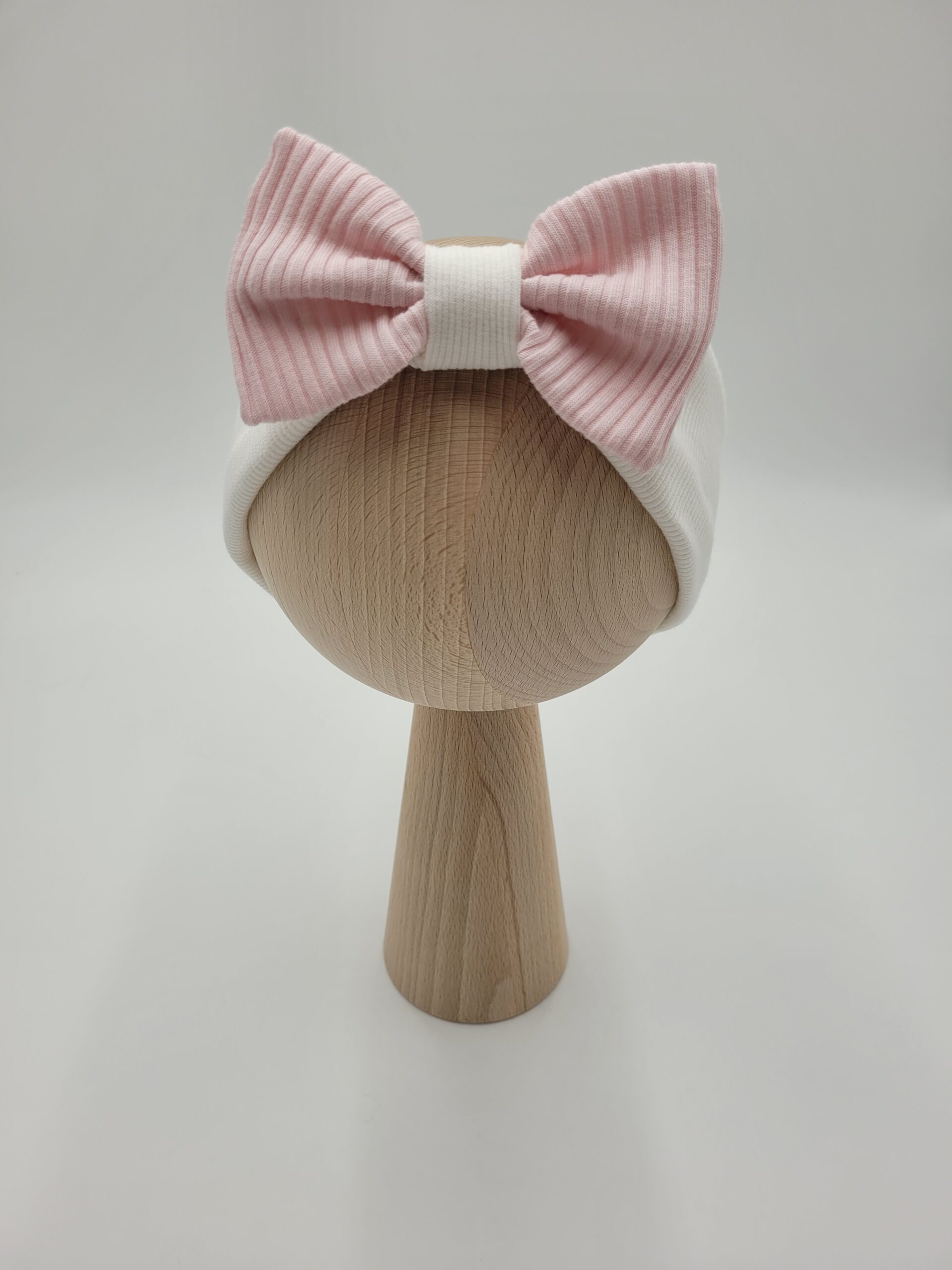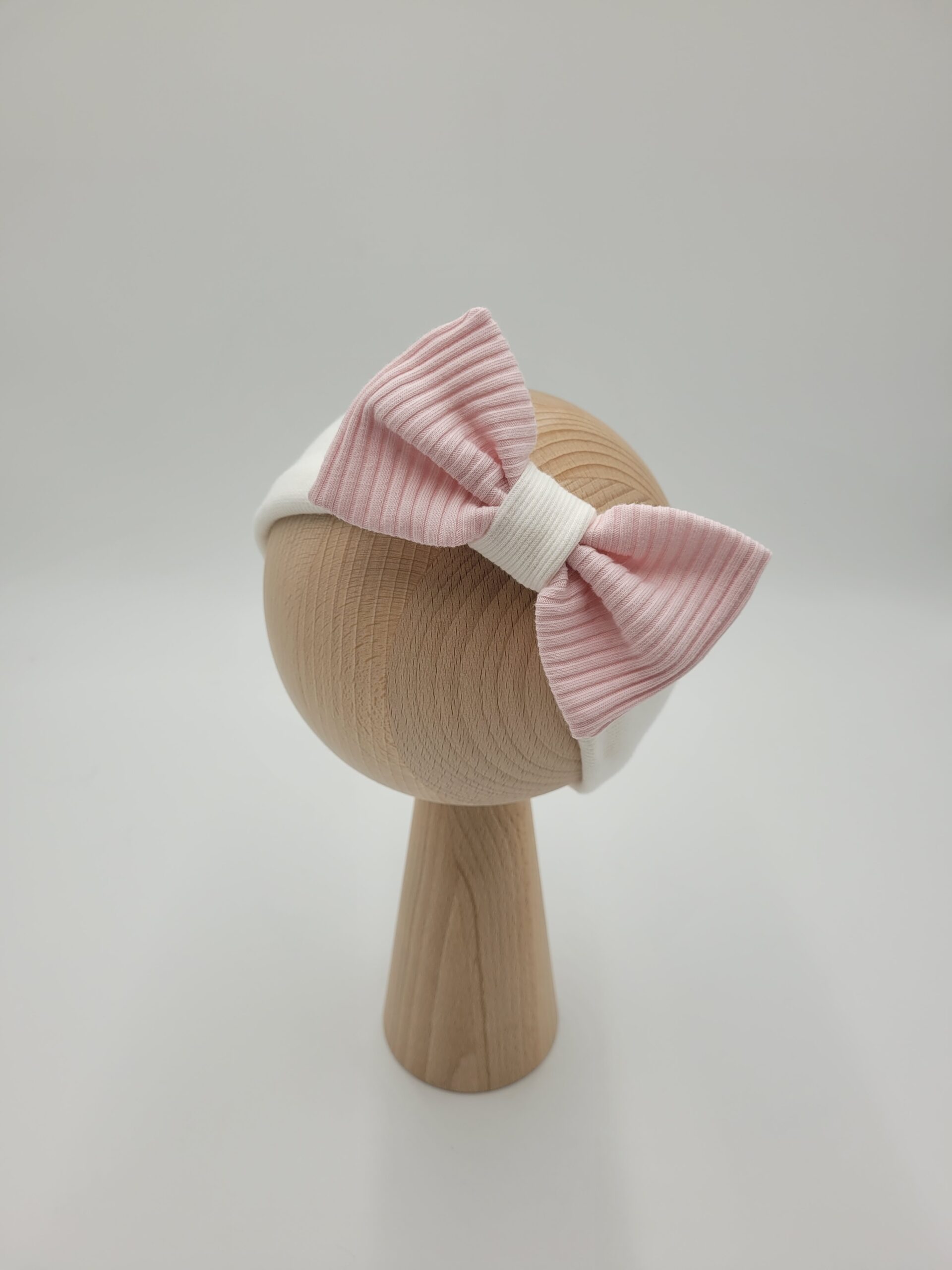 Opaska z kokardą wykonana z dzianiny prążkowanej w wybranym kolorze.