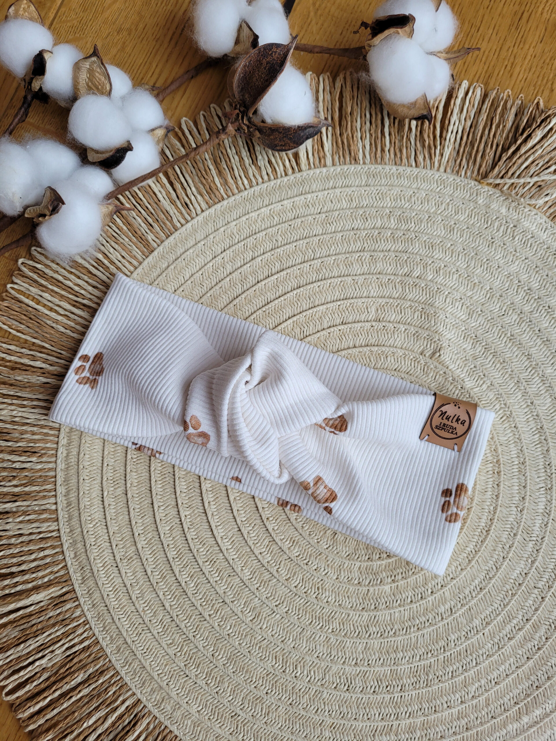 Opaska Prążkowana z Supełkiem dla Dziewczynki – Wzór Psie Łapki