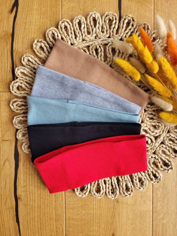 Klasyczna prosta opaska dla chłopca lub dziewczynki z dzianiny prążkowanej w wybranym kolorze.