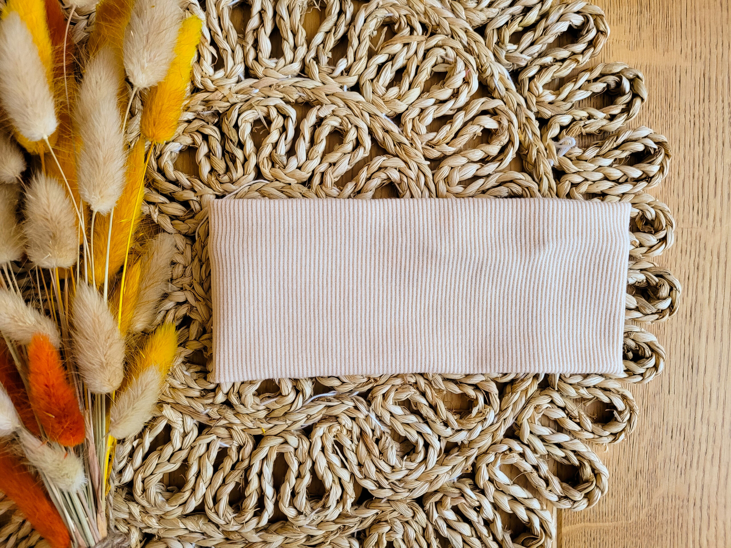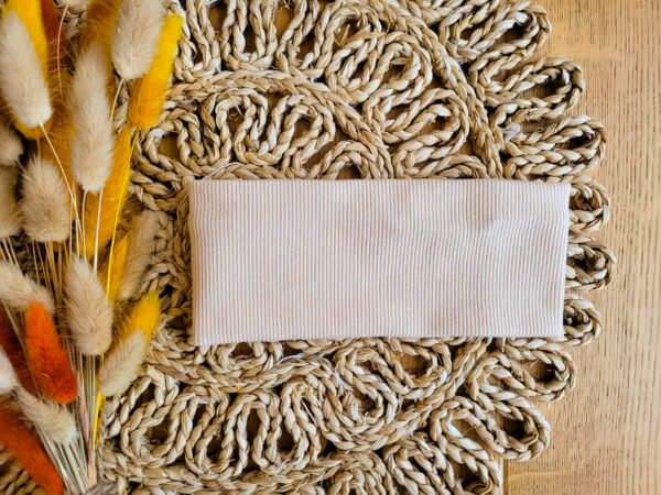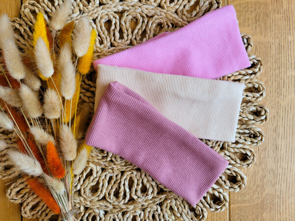 Dzianina prążkowana użyta do produkcji opaski posiada certyfikat Oeko Tex Standard 100, co gwarantuje bezpieczeństwo i jednocześnie komfort noszenia. Materiał jest miękki, elastyczny i przyjazny dla delikatnej skóry dziecka, zapewniając wygodę przez cały dzień.