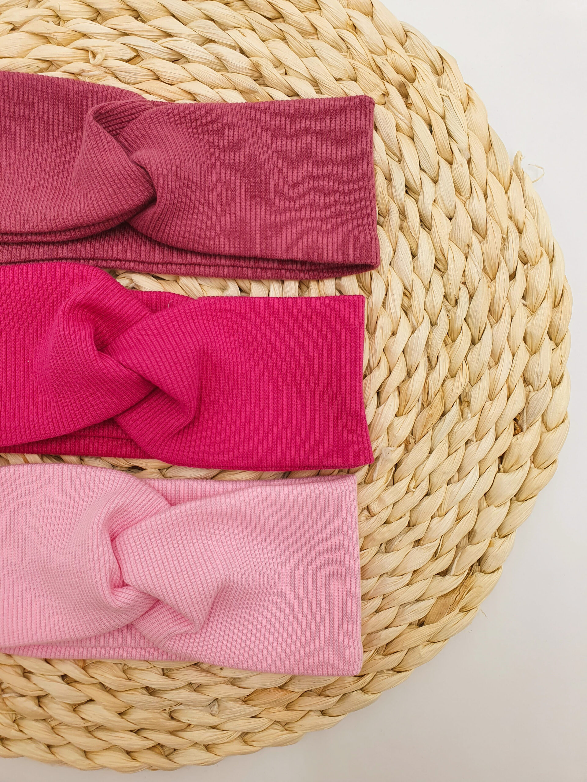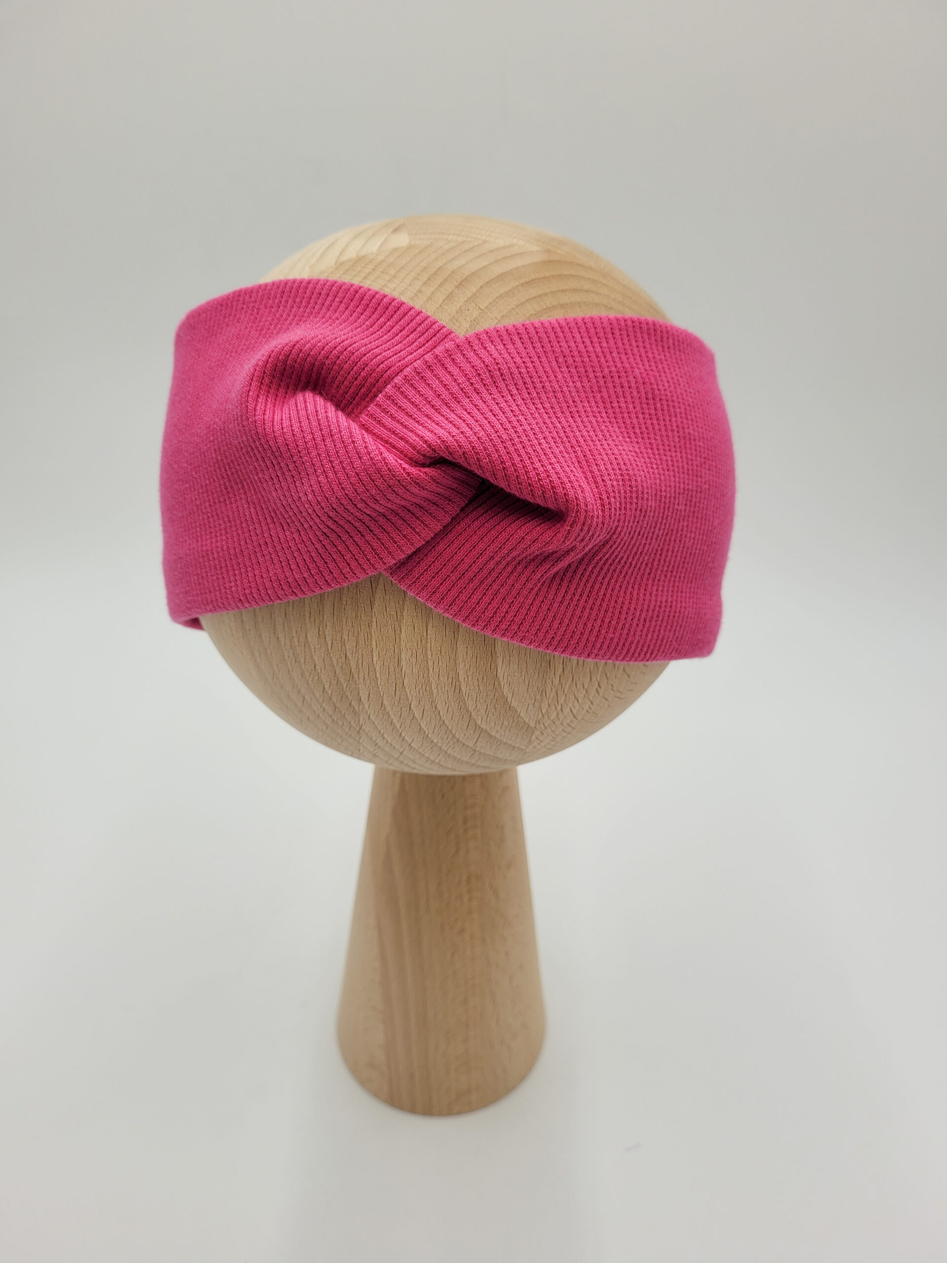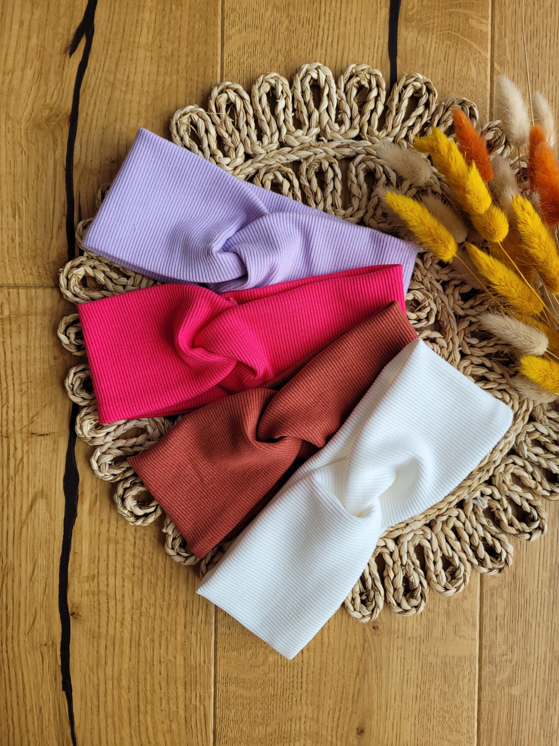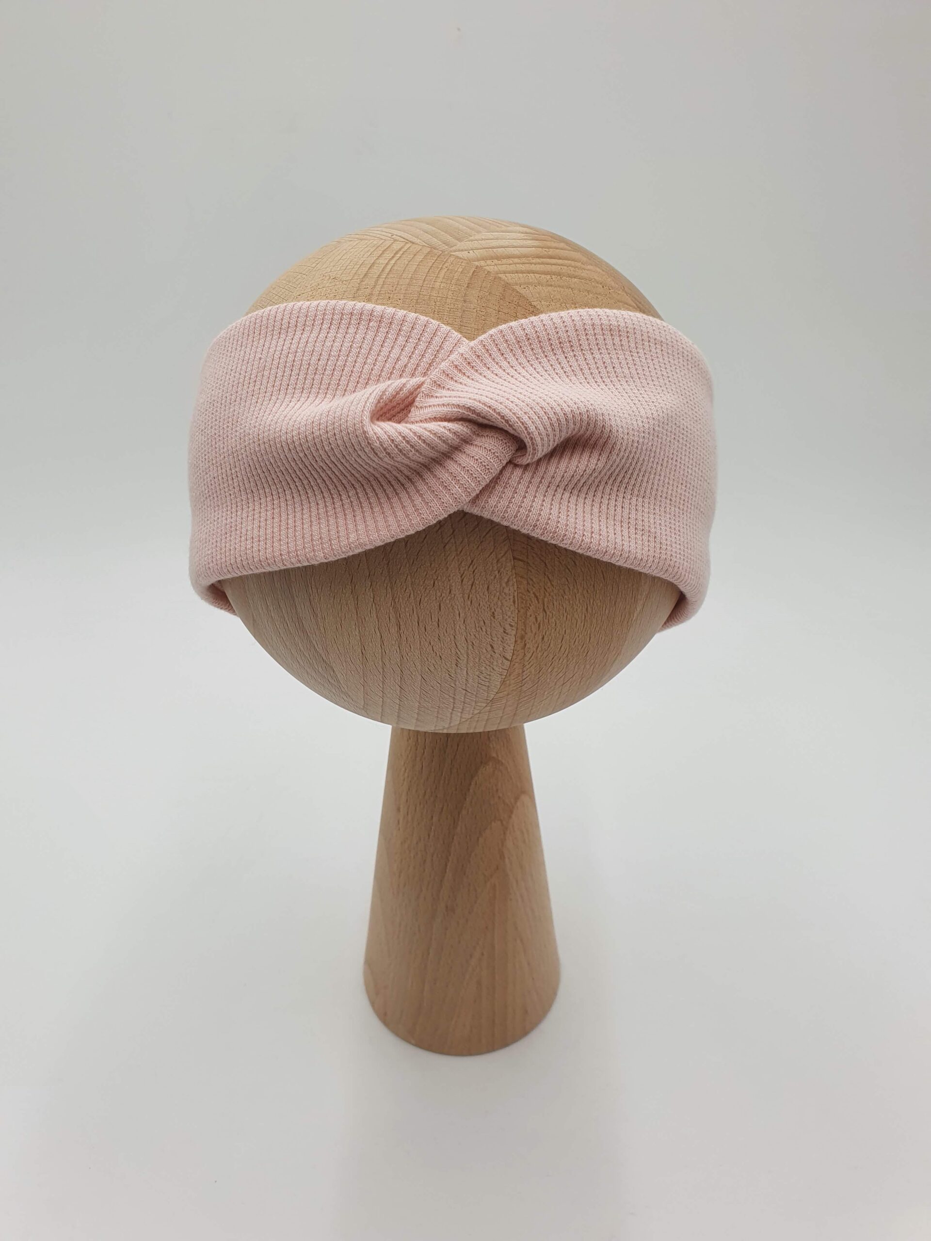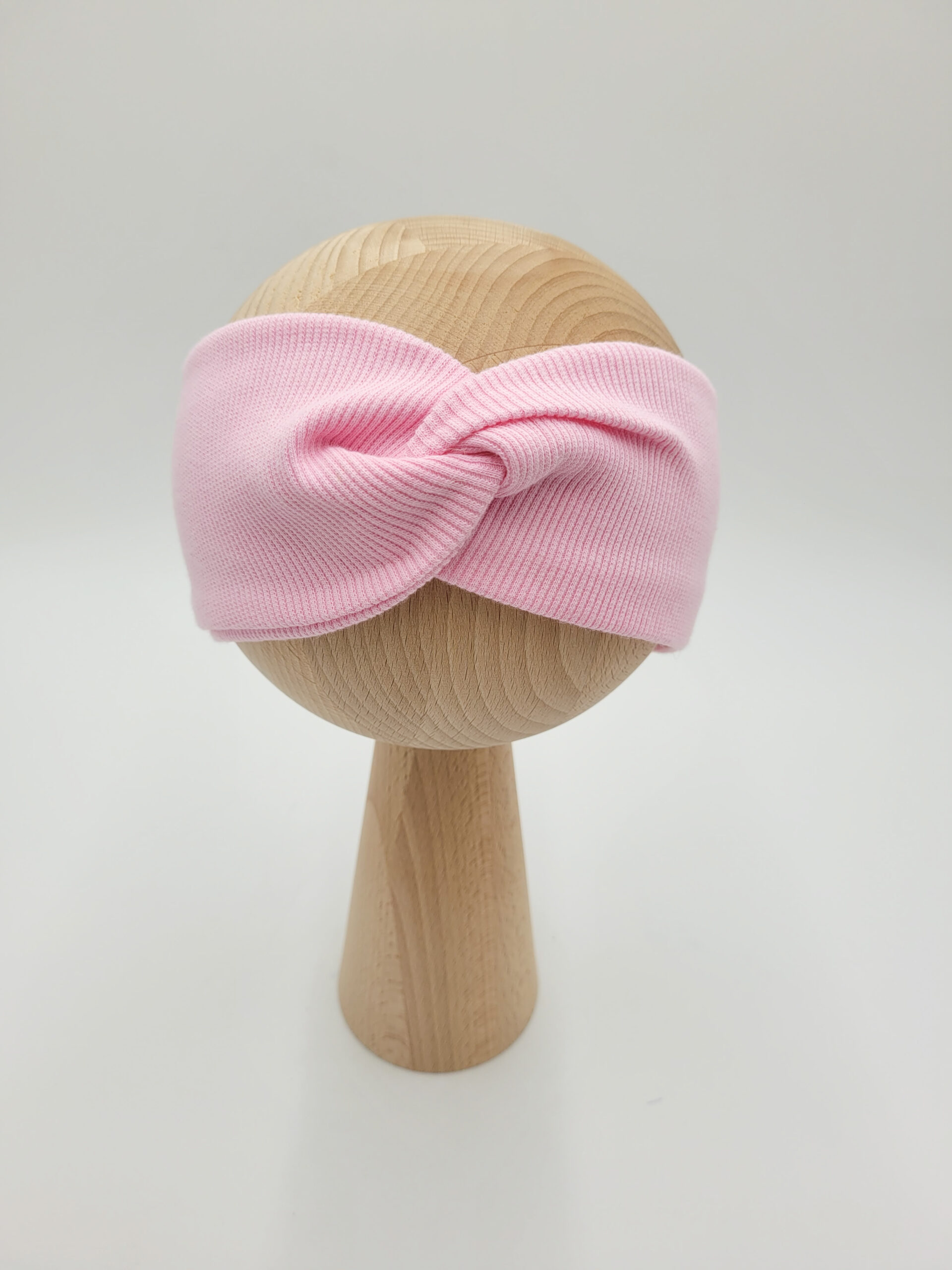 Przeplatana opaska dla dziewczynki lub osoby dorosłej z dzianiny prążkowanej w wybranym kolorze.