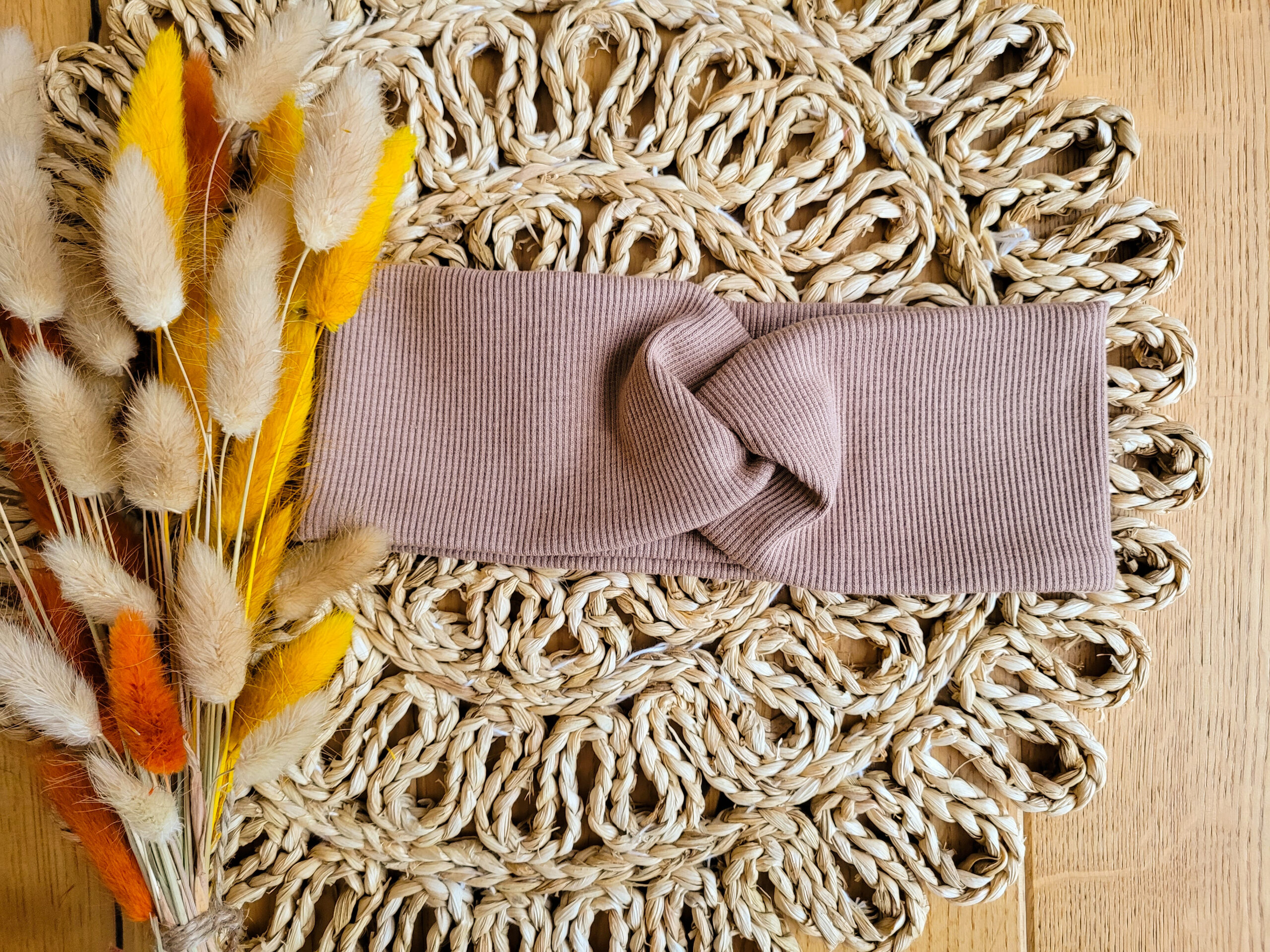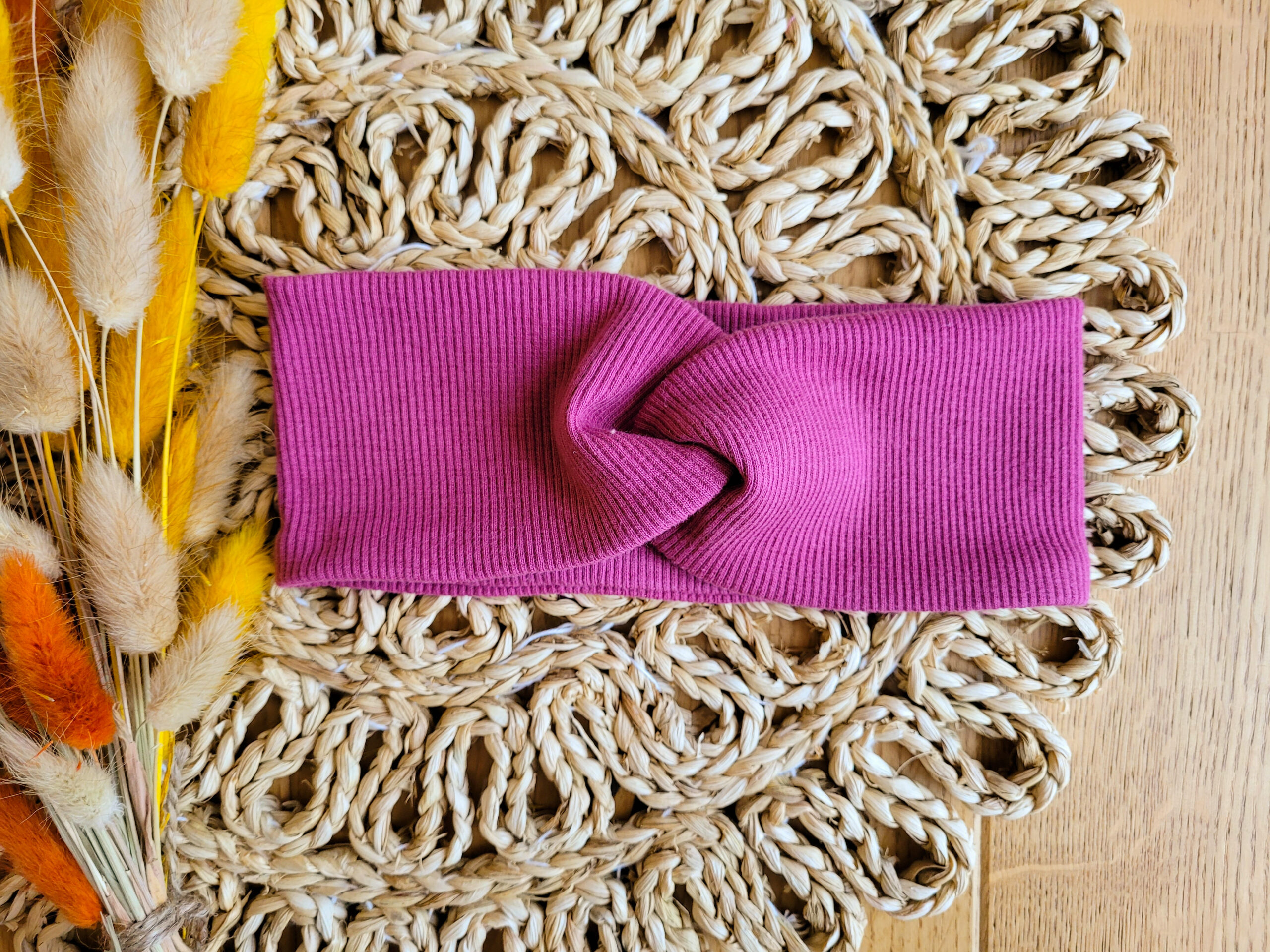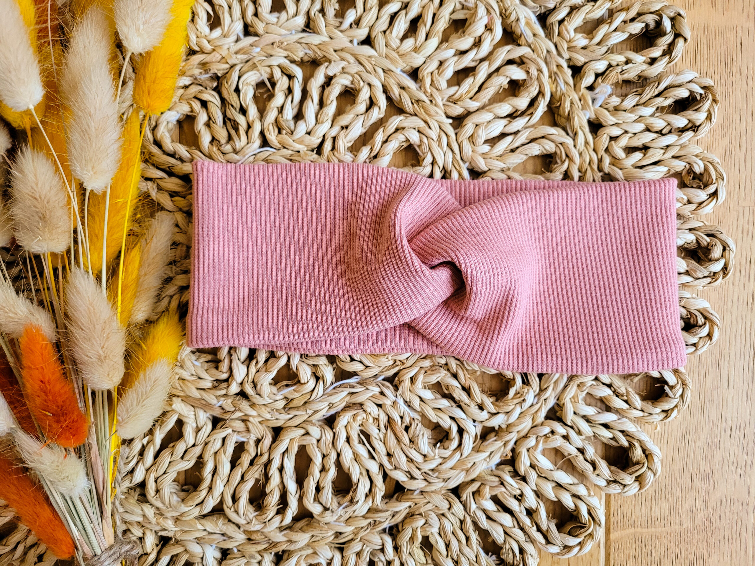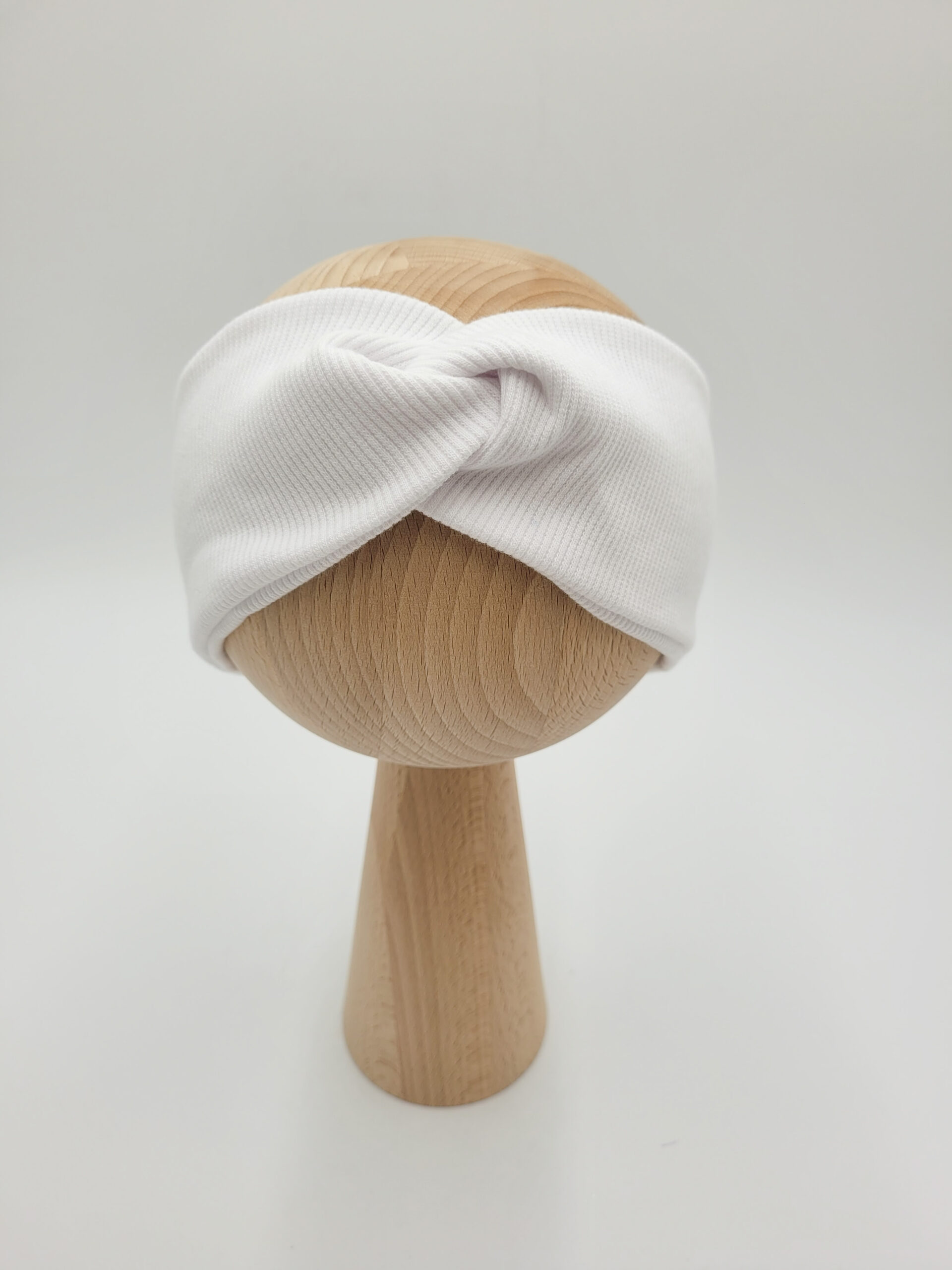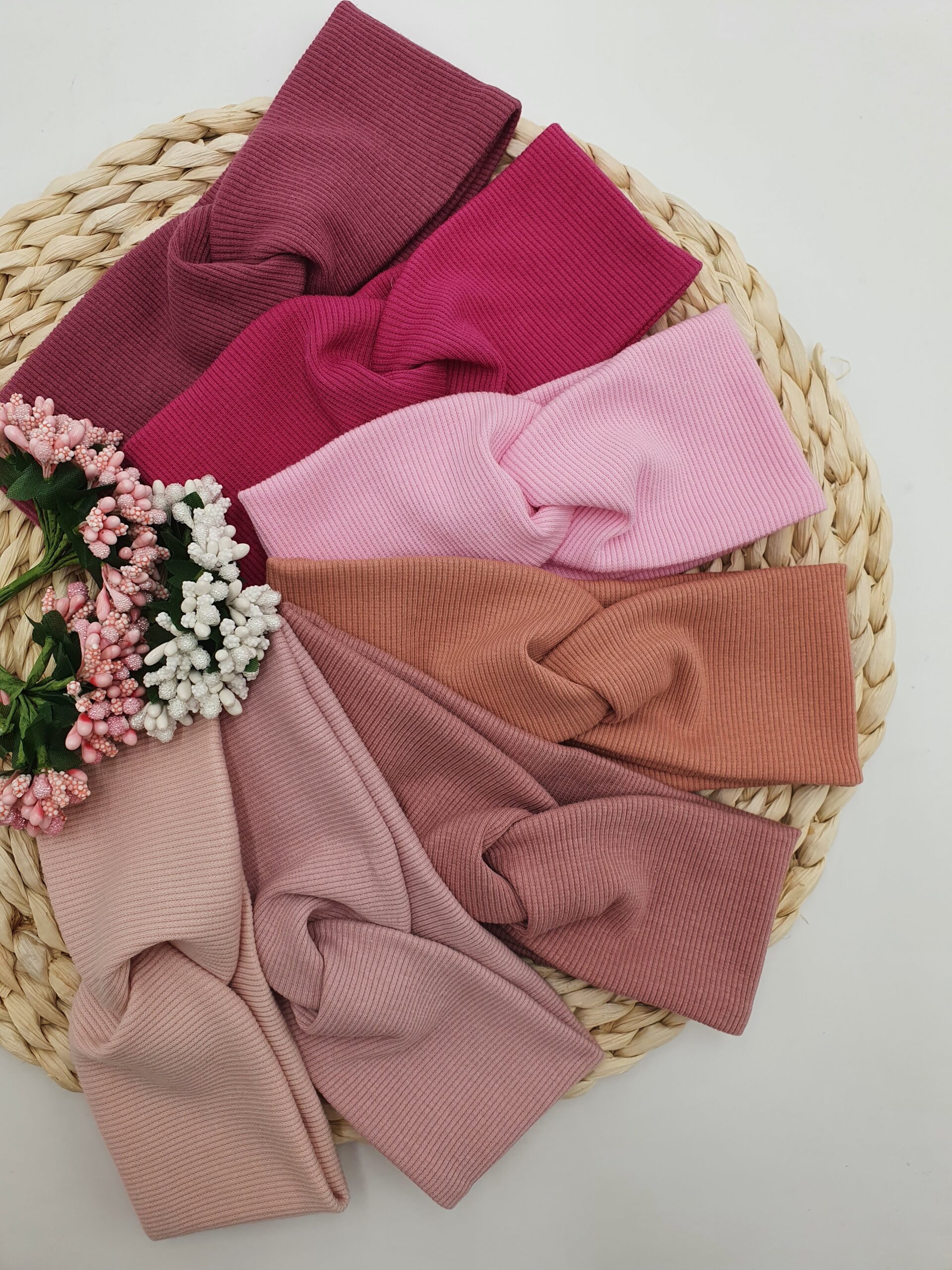 Przeplatana opaska dla dziewczynki lub osoby dorosłej z dzianiny prążkowanej w wybranym kolorze.