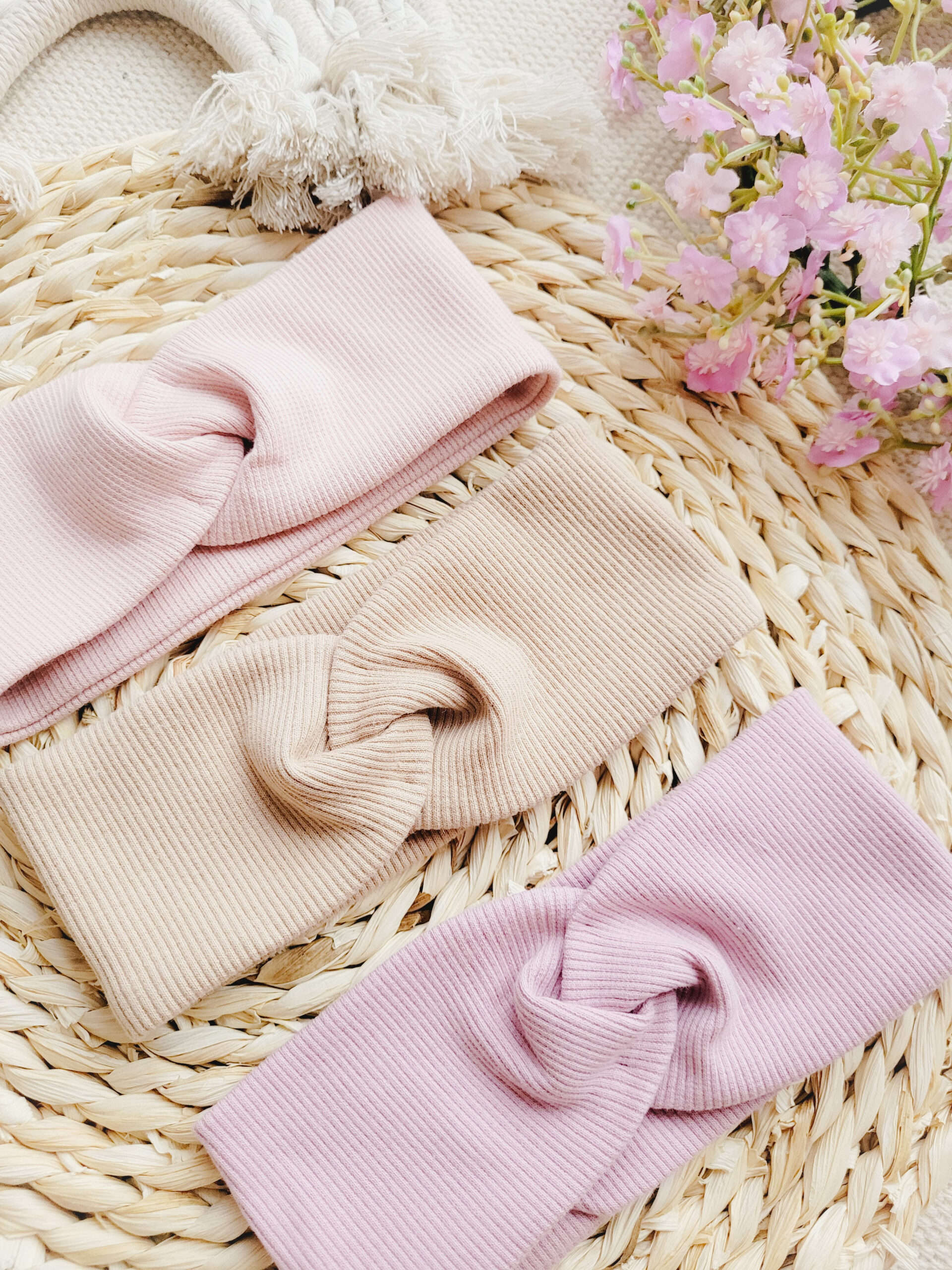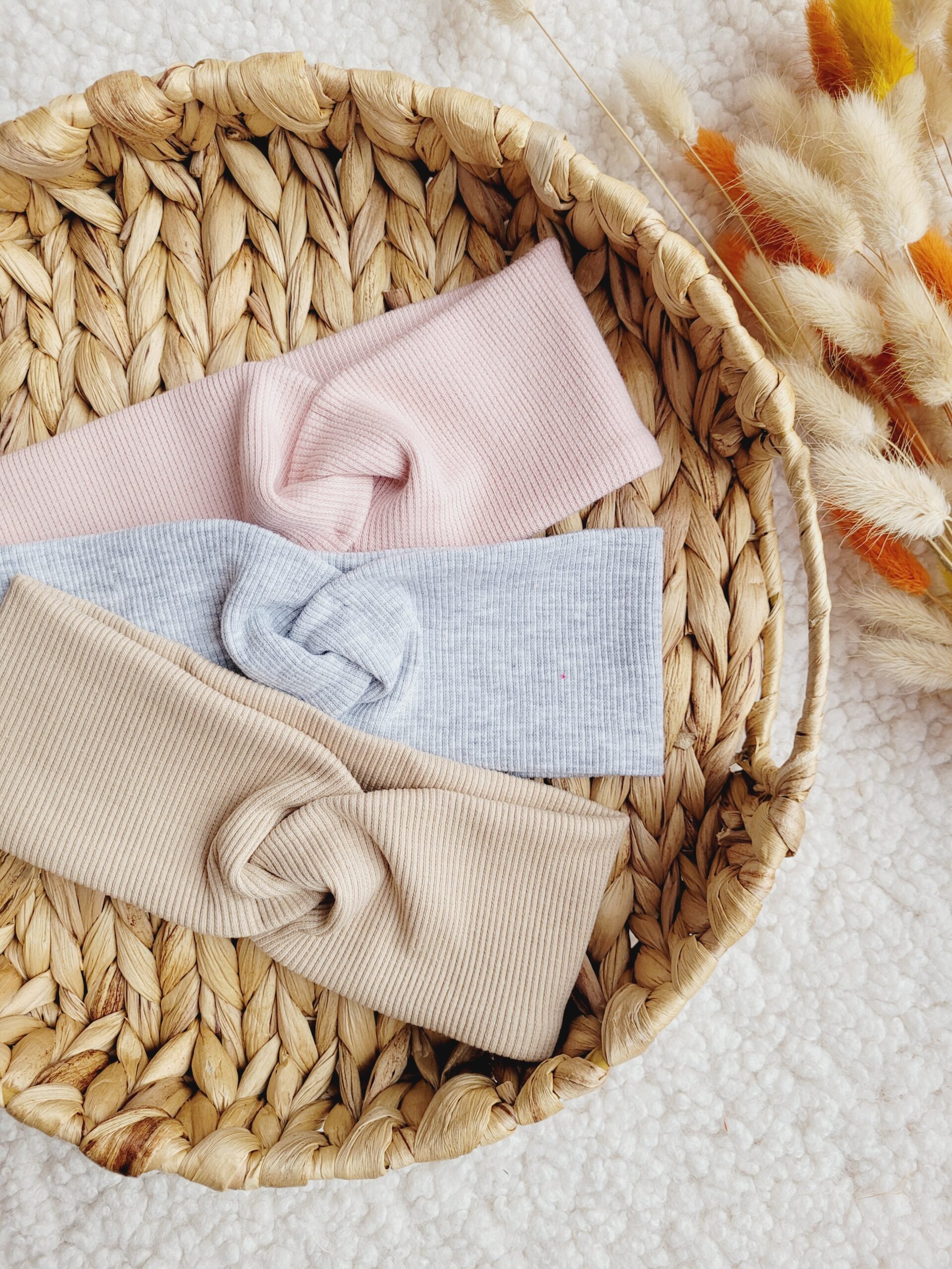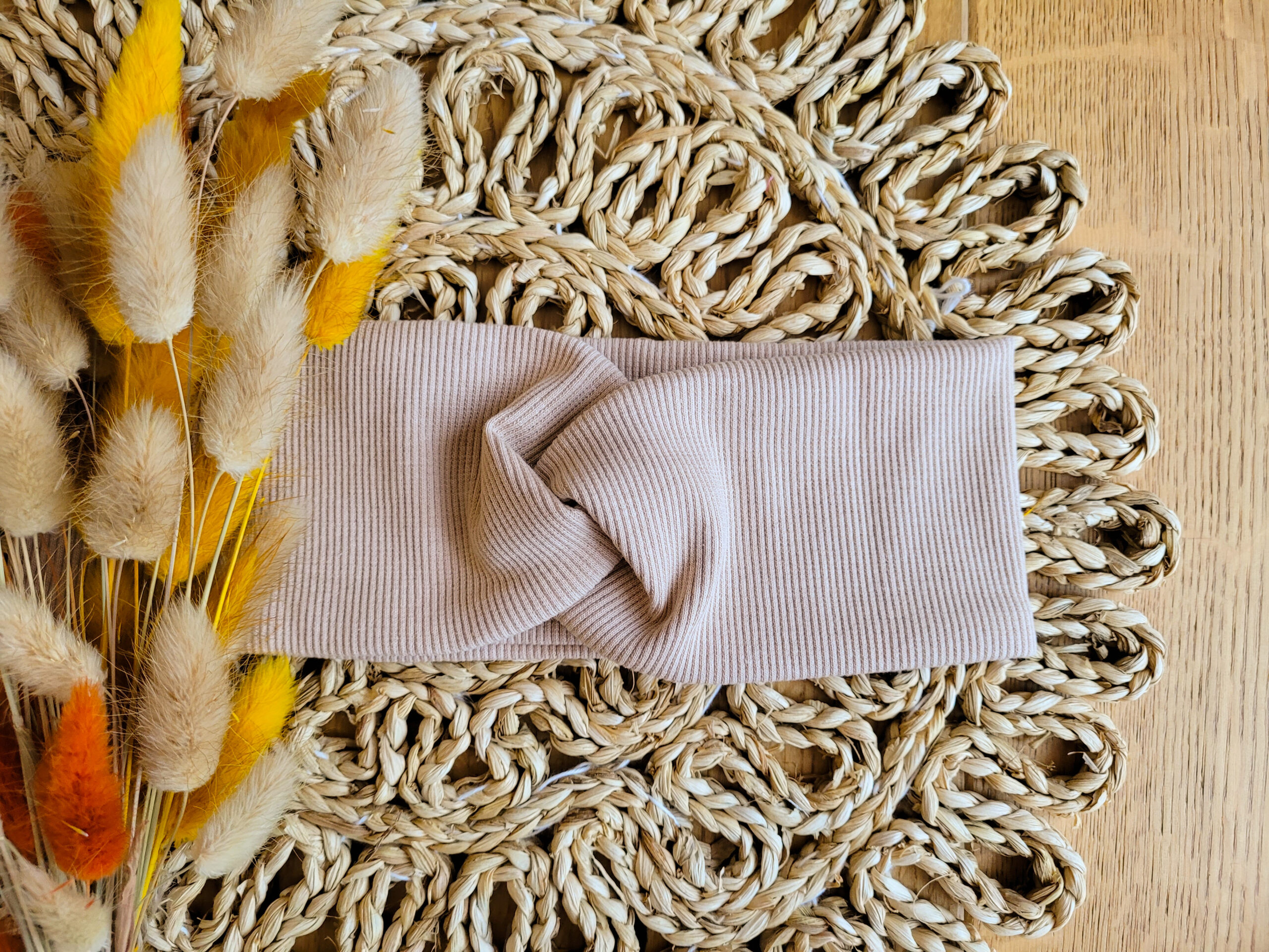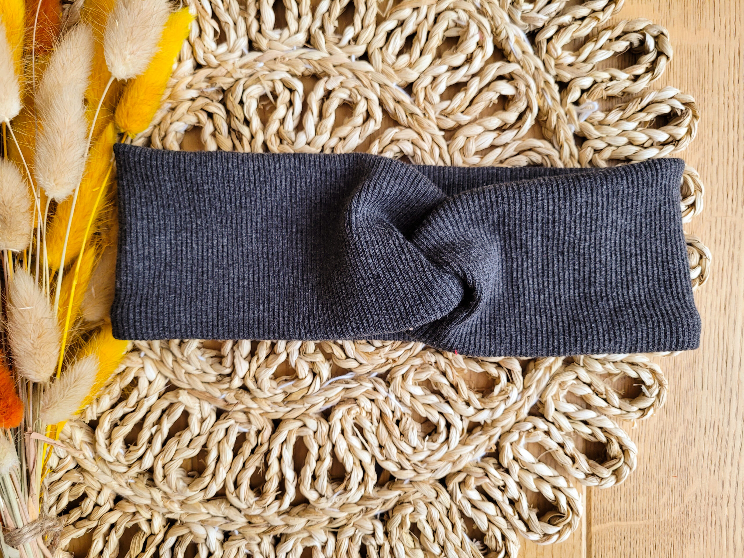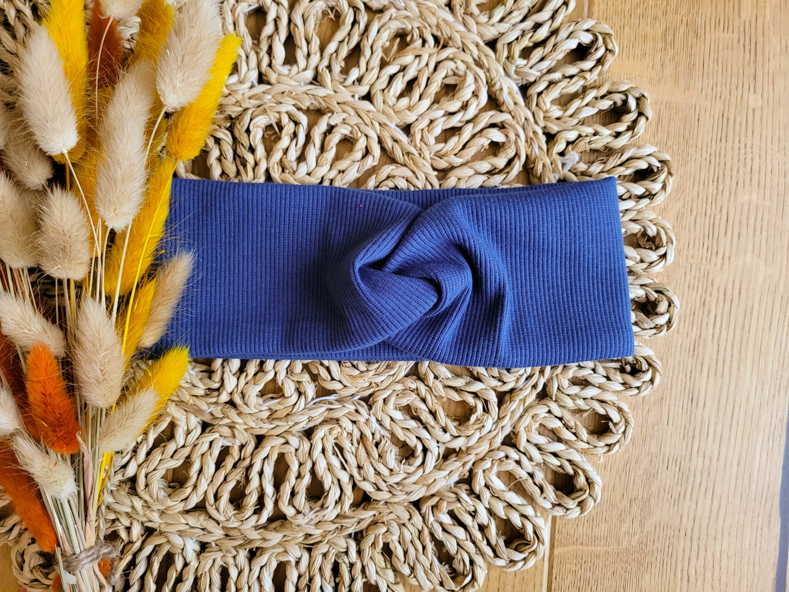 Przeplatana opaska dla dziewczynki lub osoby dorosłej z dzianiny prążkowanej w wybranym kolorze.